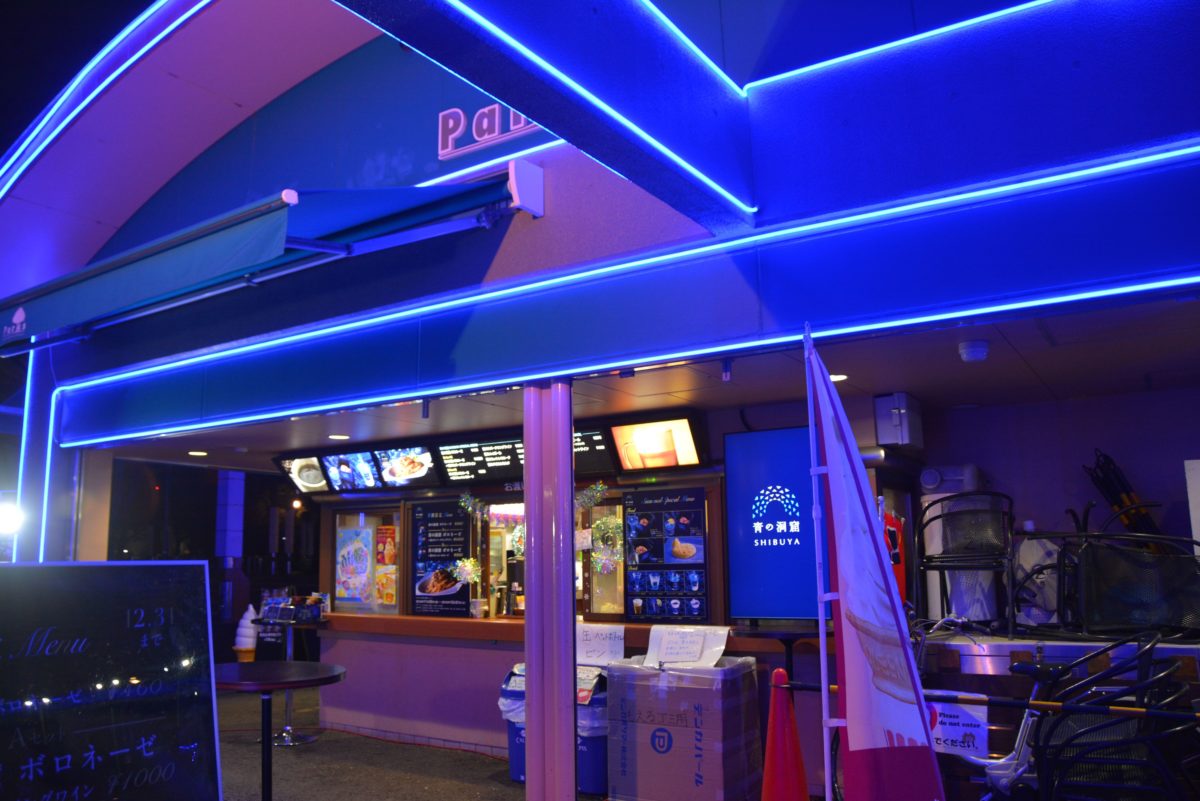 「FORTUNE BELLS」の横には期間中限定で、ポップアップショップ「青の洞窟 Blue Parks」がオープンします。青のスパークリングワインや、青のホットレモネードの他、「青の洞窟」のパスタメニューを味わえば、さらに気分を盛り上げることができるでしょう。