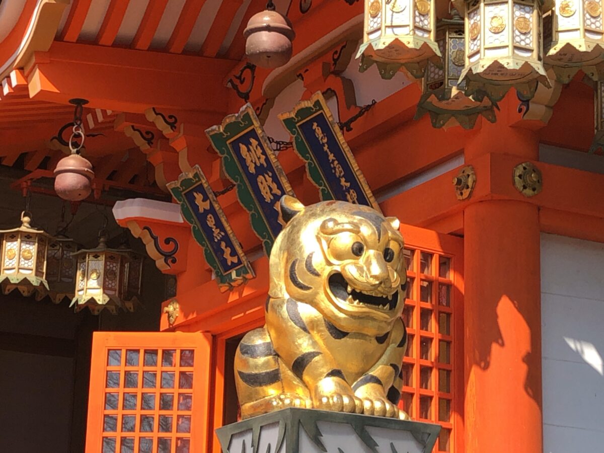 「虎は千里往って千里還る」とも言われます。虎は行動力と活力に満ちており、1日で千里もの道のりを行って帰ってくることができるという意味です。また虎の黄金色の縞模様は、金運の象徴とされています。