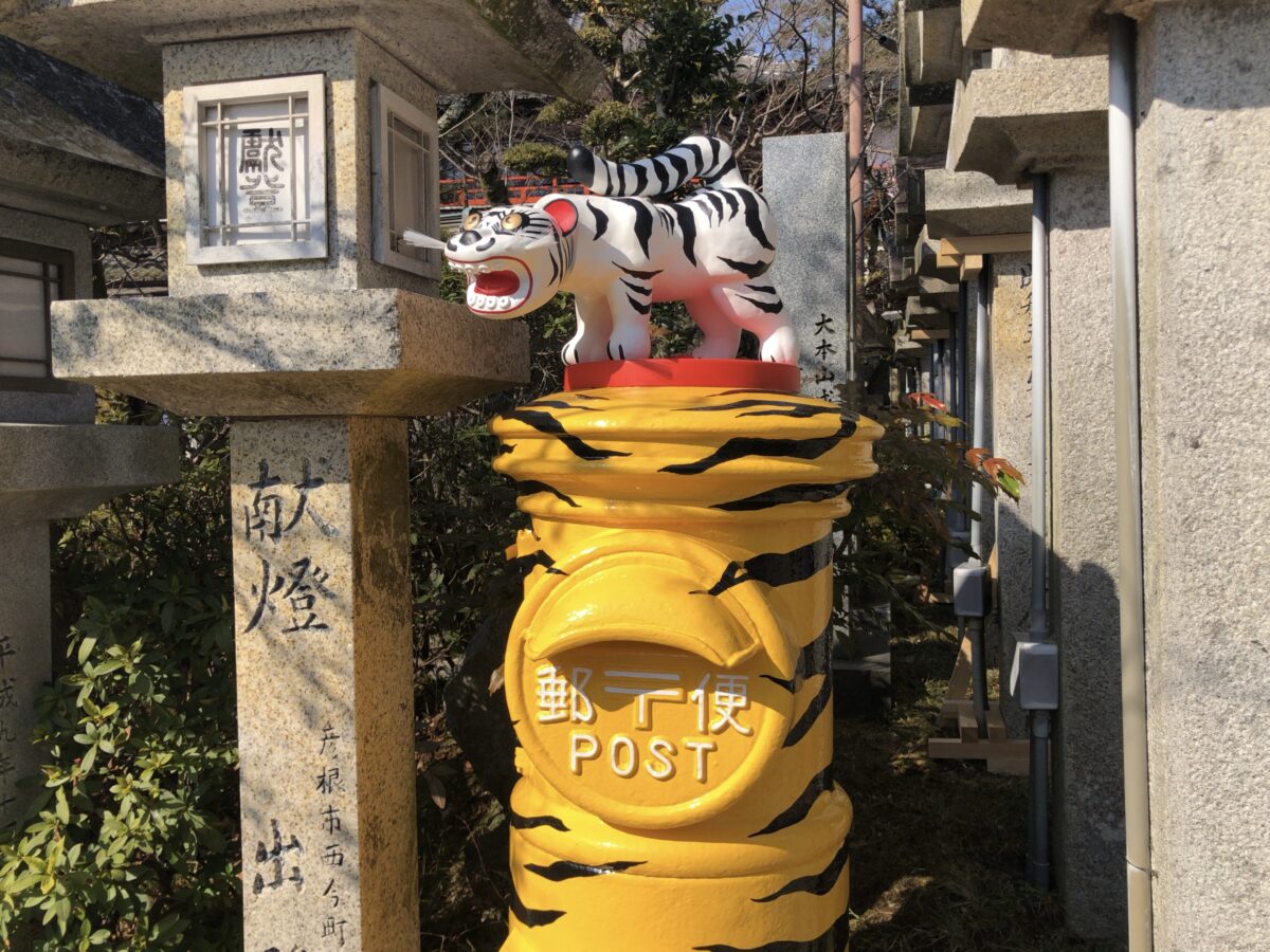 ポストも寅。ここから送れば、寅のご利益を手紙に乗せてお裾分けできそうです。