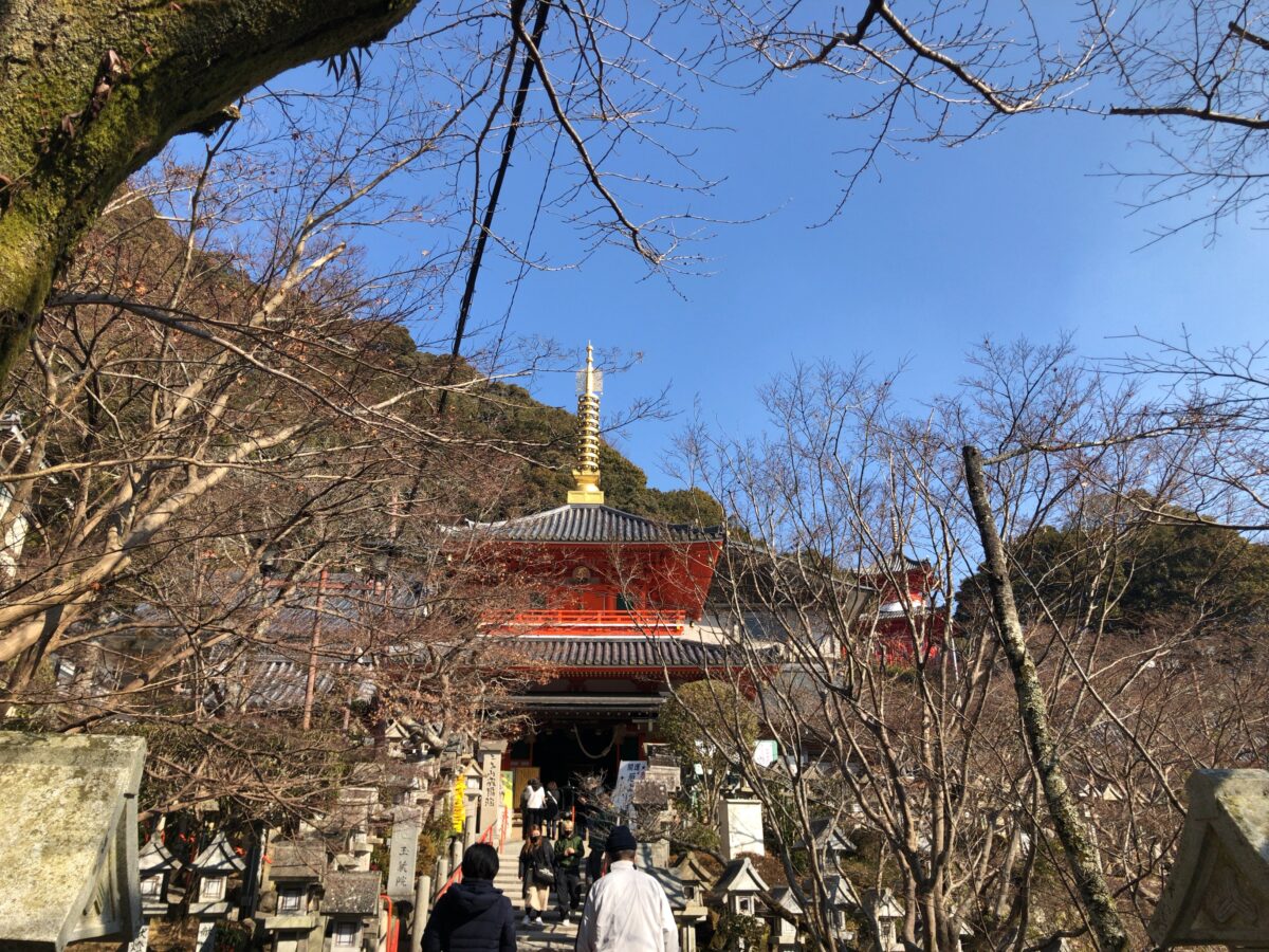 また信貴山城跡や、頂上に位置するお堂まで行くと、冬場でも汗だくになります。ただ山の天候は変わりやすいので、急に冷え込むことも。脱ぎ着しやすい上着があると安心です。