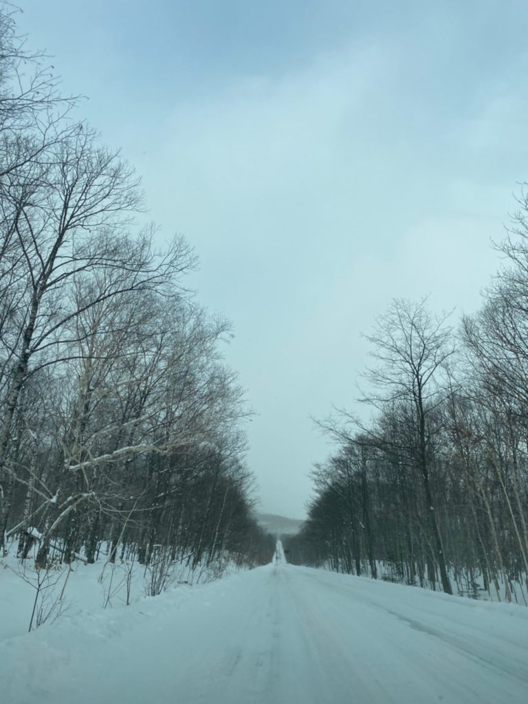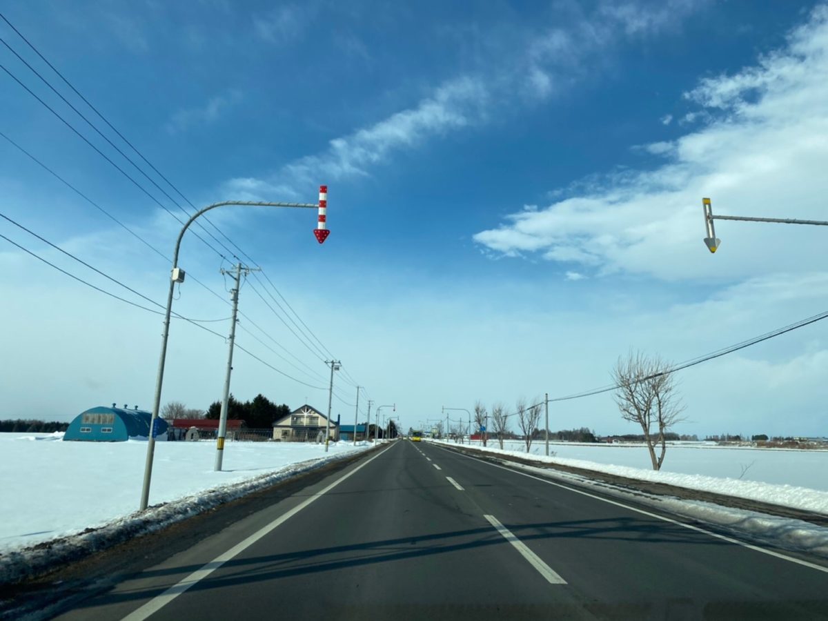 さすがは北海道、牧草地や畑など見晴らしのいい風景が広がり、信号もほとんどなく、音楽を聞きながら優雅なドライブを洒落込みました。目的の然別湖は空港から約90分の距離にありますが、快適なドライブはあっという間でした。雪道走行を懸念していましたが、当然のことながらレンタカーはスタッドレスタイヤが標準装備され、積雪自体も少なく杞憂に終わりました。さすがに然別湖が近づくと積雪していましたが、除雪が行き届いており必要以上に心配することはありませんでした。