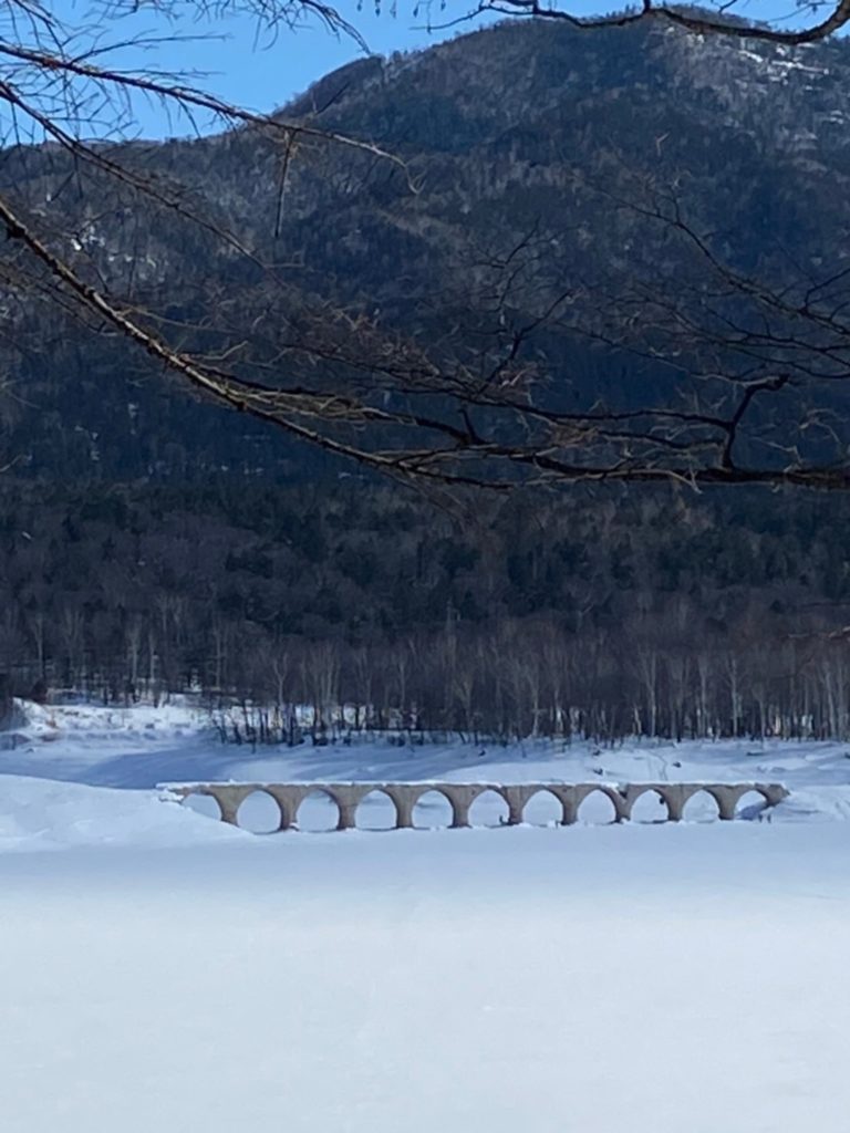 なお、幌加温泉から湯元館までの道中にタウシュベツ川橋梁という夏季には湖底に水没してしまう珍しい橋があります。死ぬまでにみたい絶景などにも選ばれている風光明媚な橋です。この写真は展望台から撮影したものですが、橋の側まで行けるツアーもあります。また、糠平湖ではワカサギ釣りを楽しむこともできます。ウインターアクティビティもたくさんあるので、温泉だけでは物足りない人は是非挑戦してみてください。