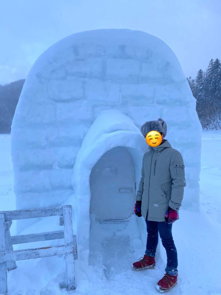 冬場の平均気温は氷点下6℃位ですので、しっかりと防寒をする必要があります。スキーウエアを着込んでいる人もいましたが、私はユニクロの極暖ヒートテックで身を固め、普段着用の厚手のコートで行きました。それより大事なのは足元で、今回行ったところは積雪している場所もあり、雪用の丈の高い防水の靴を履いて行った方がいいです。せっかくの旅行が濡れて寒い思いをしてはもったいないのでしっかりと準備をしましょう!