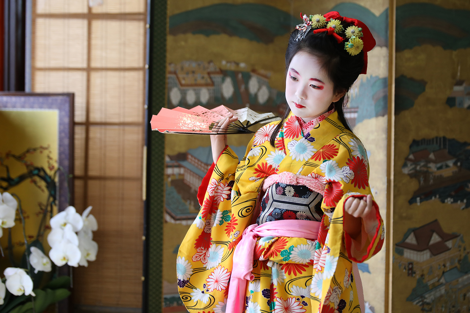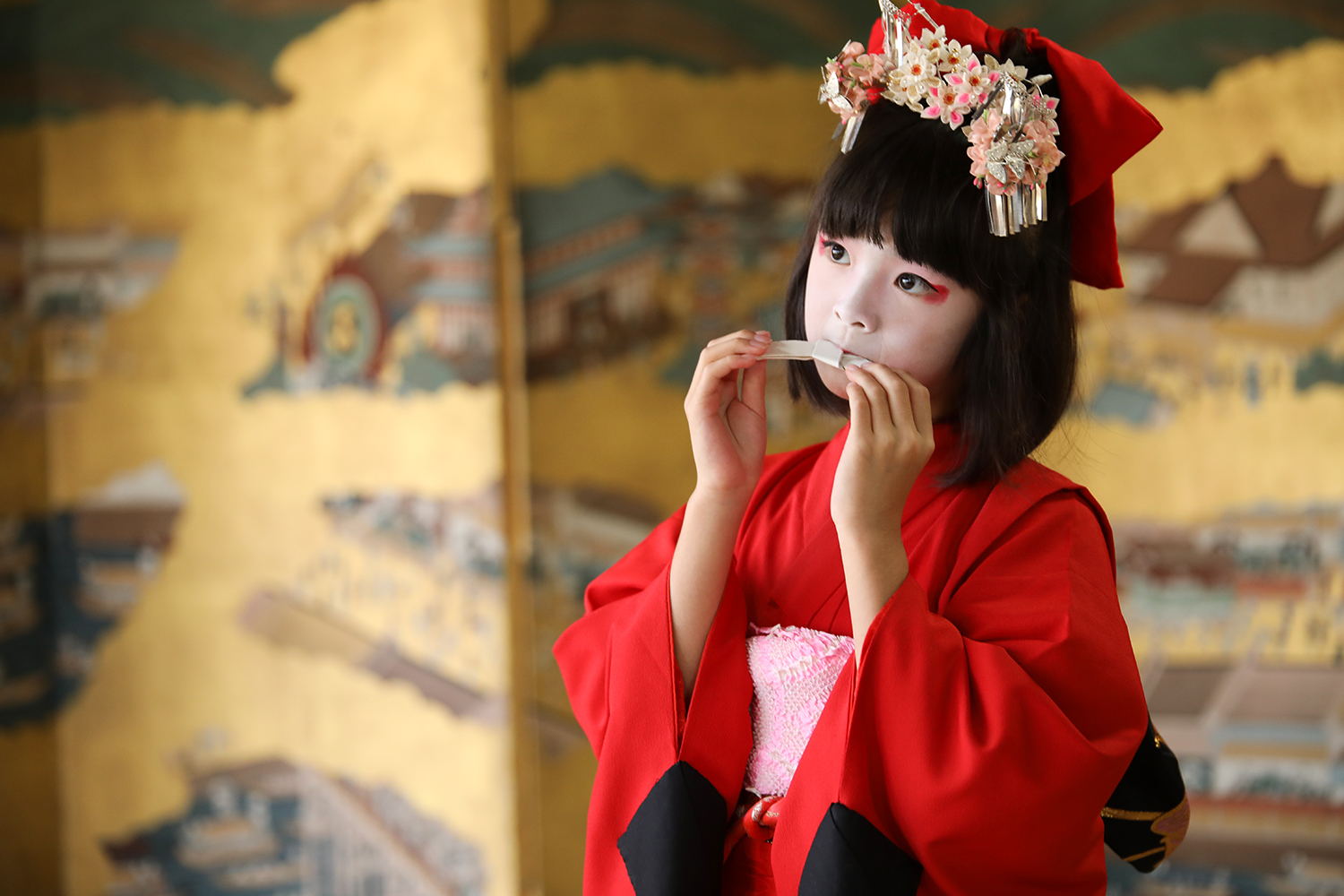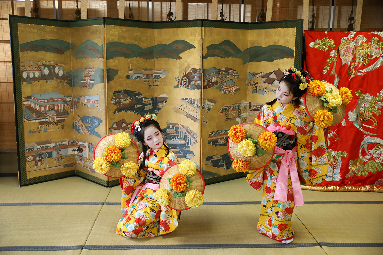 禿での舞は必修ではありませんが、少女になると必要なので、少女に進みたい禿はお稽古します。又、禿を飛ばして少女から始める事はありません。」