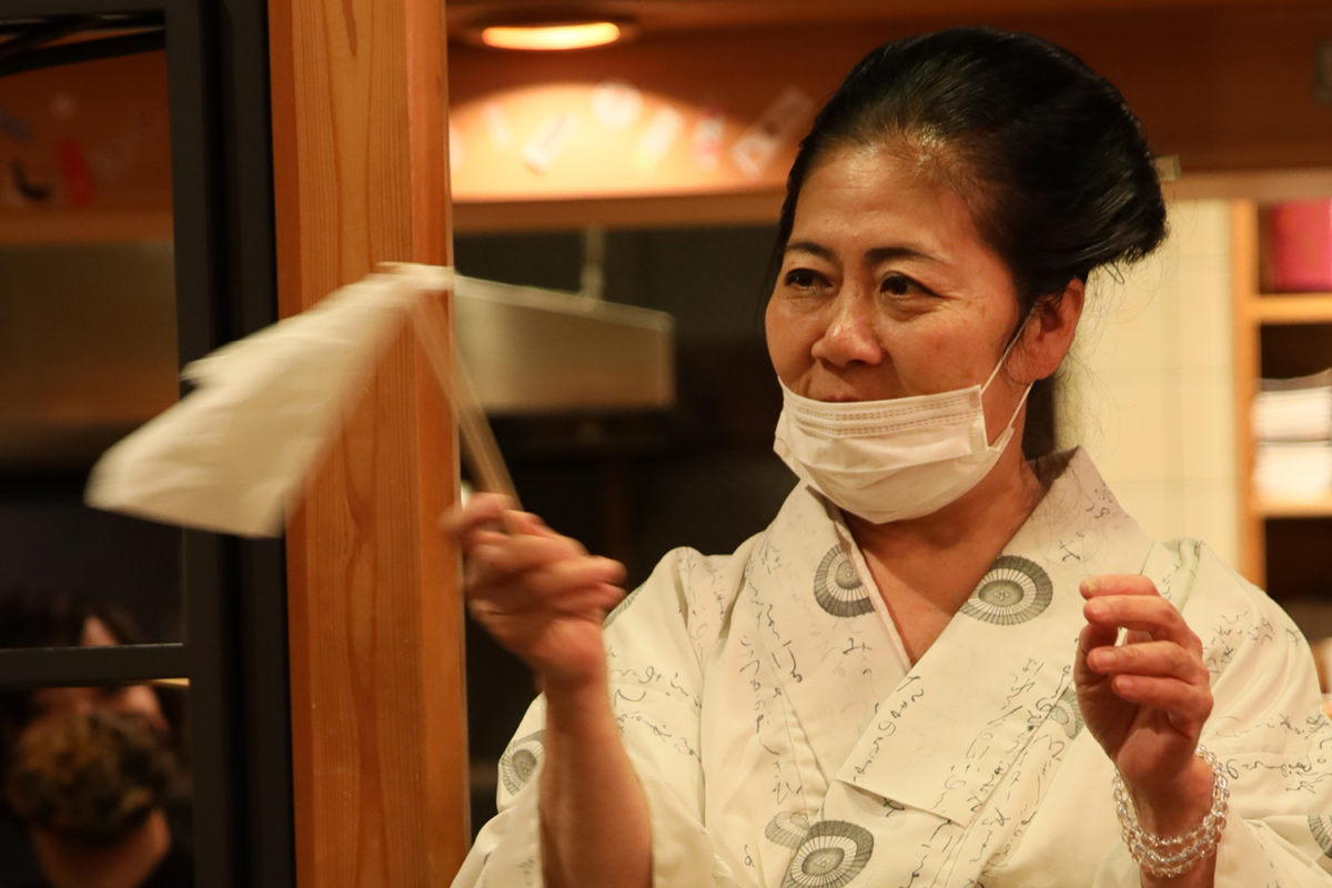 おさらい会での司会進行と舞の解説は末廣屋の女将で現役太夫「司太夫」。