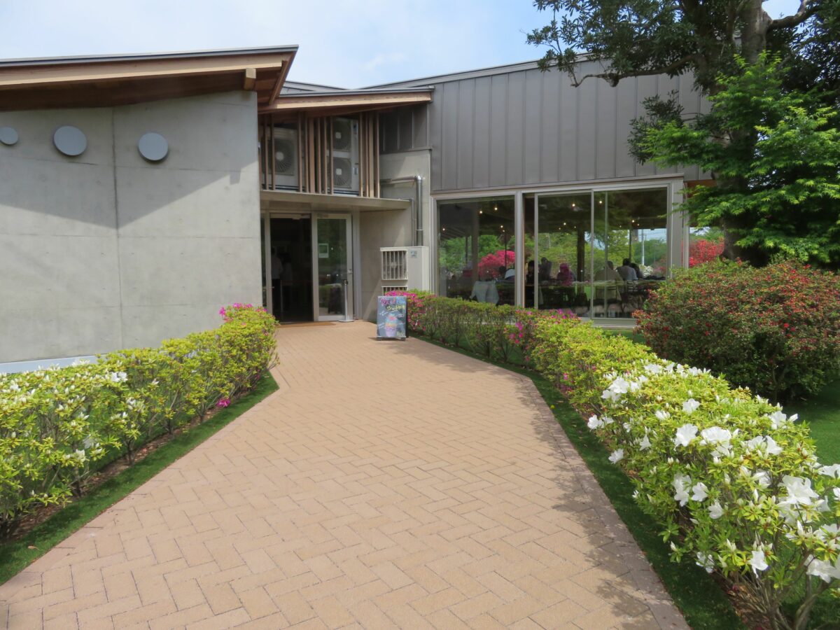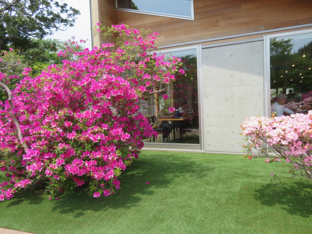 つつじの花に囲まれたカフェで過ごすランチタイム