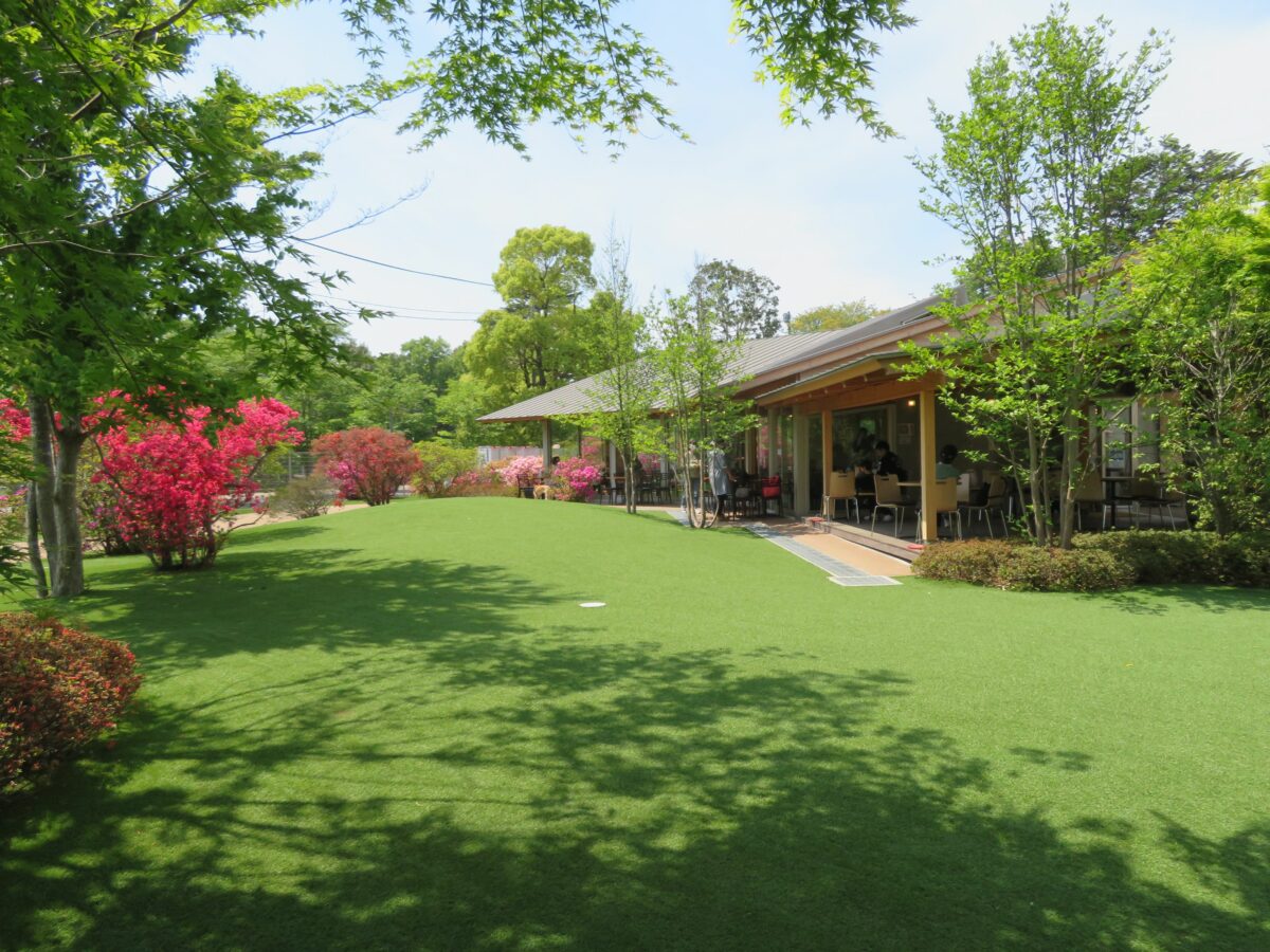 清水公園では隅々に春の季節感が溢れていますが、公園の入口広場のカフェまで、つつじの花で包み込まれています。園内を散策しているときばかりでなく、ランチタイムにも春の雰囲気を堪能することができるのです。