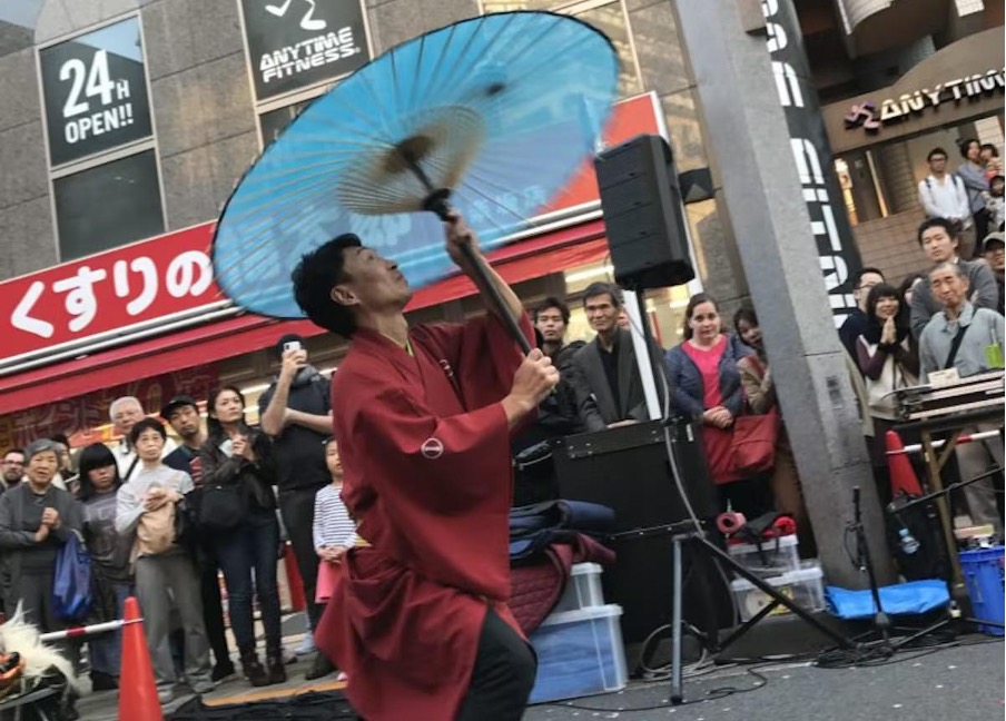 一方、江戸に伝わった太神楽は寄席に出て人気を博し、今では投げ物や傘回し、あごの上に板や茶碗を積み上げるバランス芸といった曲芸が一人立ちするようになりました。