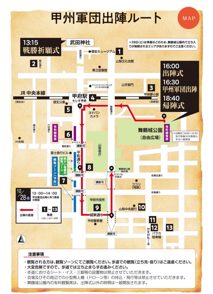 16:30~ 甲州軍団出陣開始 場所:舞鶴城公園~平和通り~スクランブル交差点