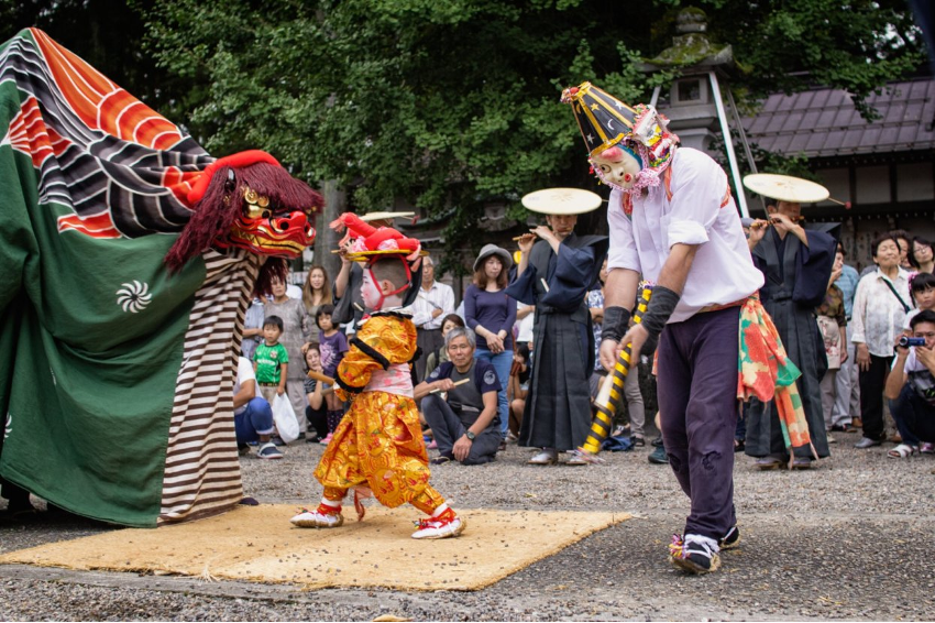実は郡上市内には、獅子神楽を行う集落がたくさんある。盆踊りと同じくらい、獅子神楽の盛んな土地柄なのだ。獅子神楽の他にも、地歌舞伎や掛踊(かけおどり)などの多彩なおまつりも見逃せない。郡上市は民俗芸能のるつぼであり、芸能の里と言ってよいだろう。
