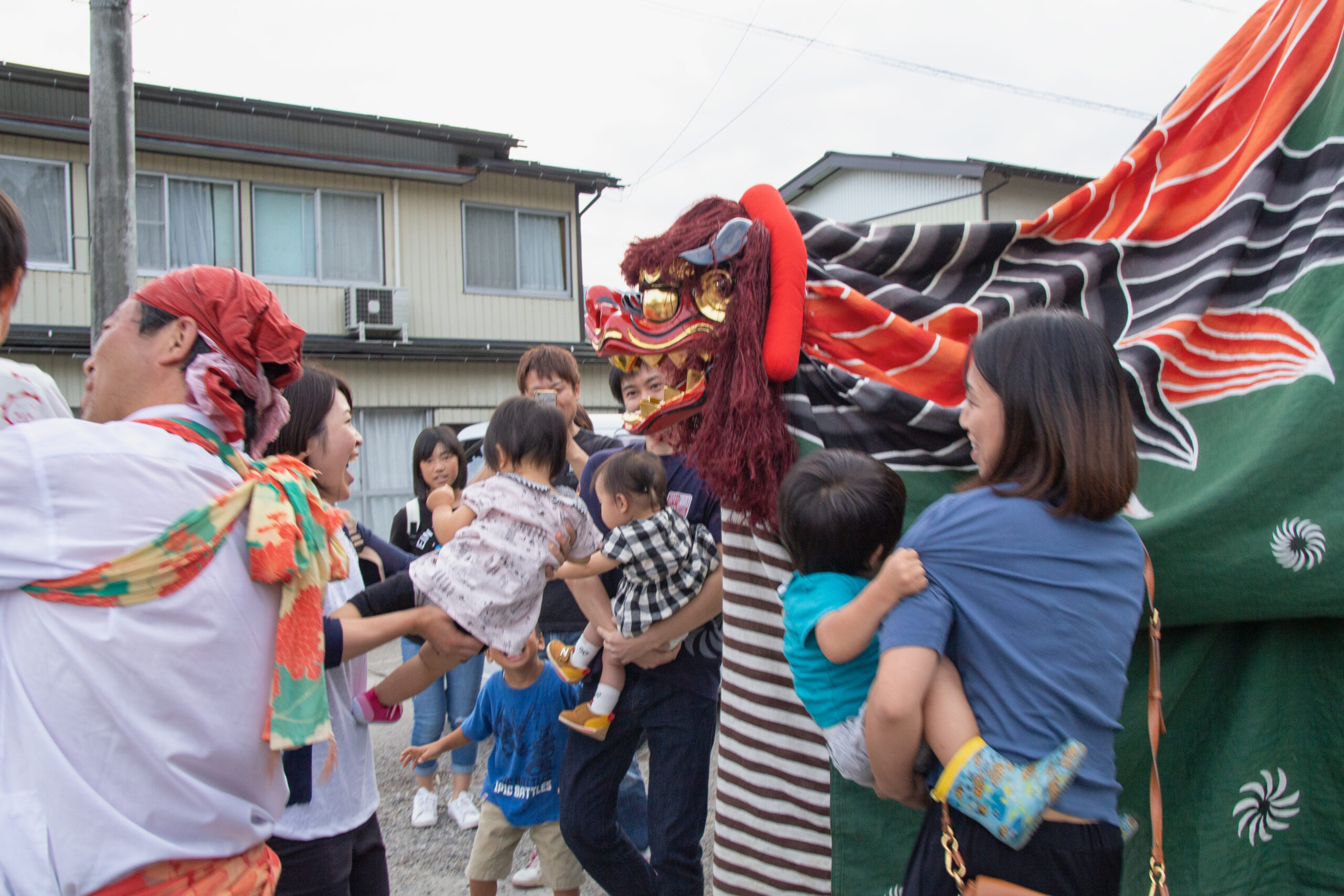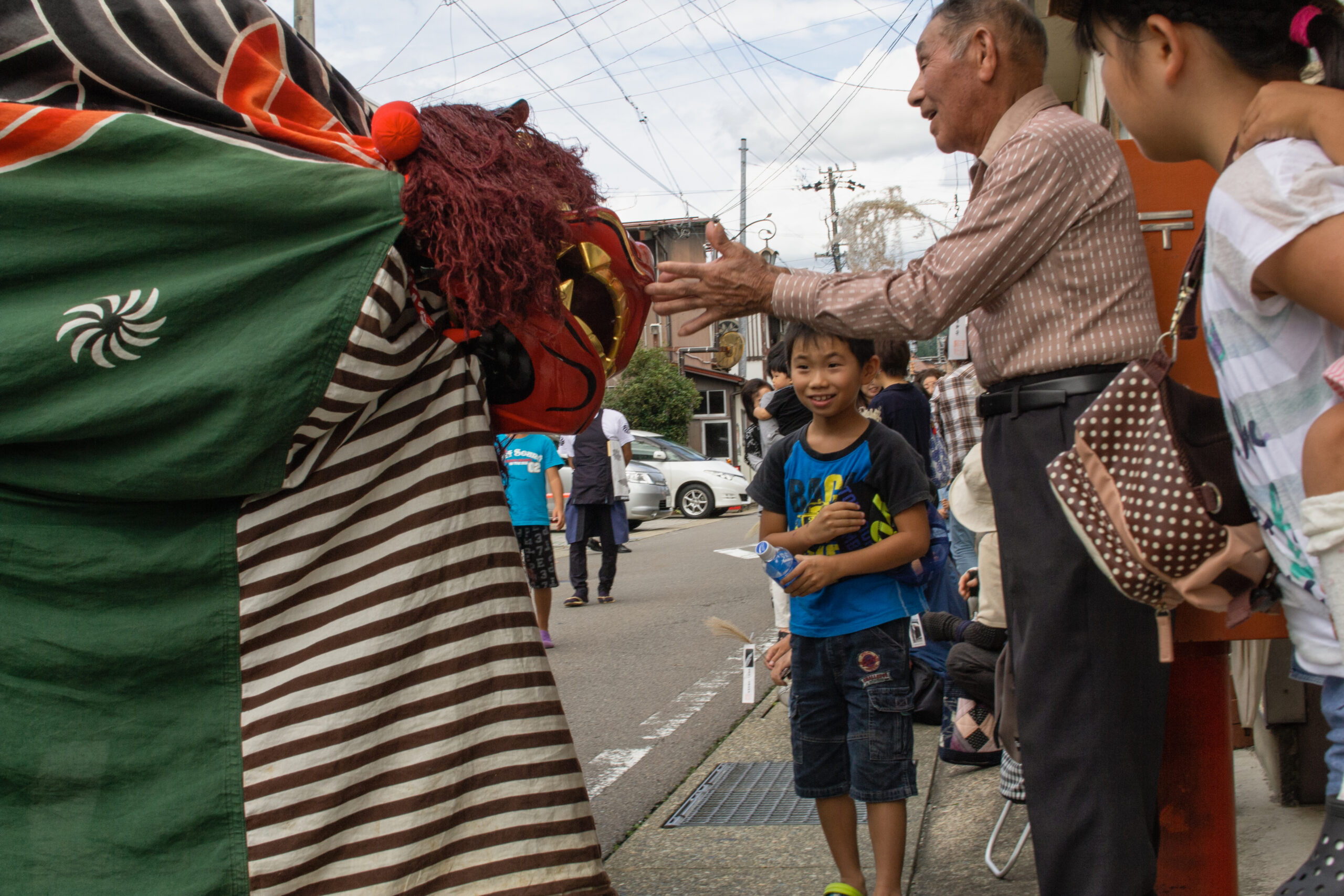 上の写真で獅子の中をのぞいていた子が、3年後に迎えた晴れ舞台。(写真:渡辺 葉)