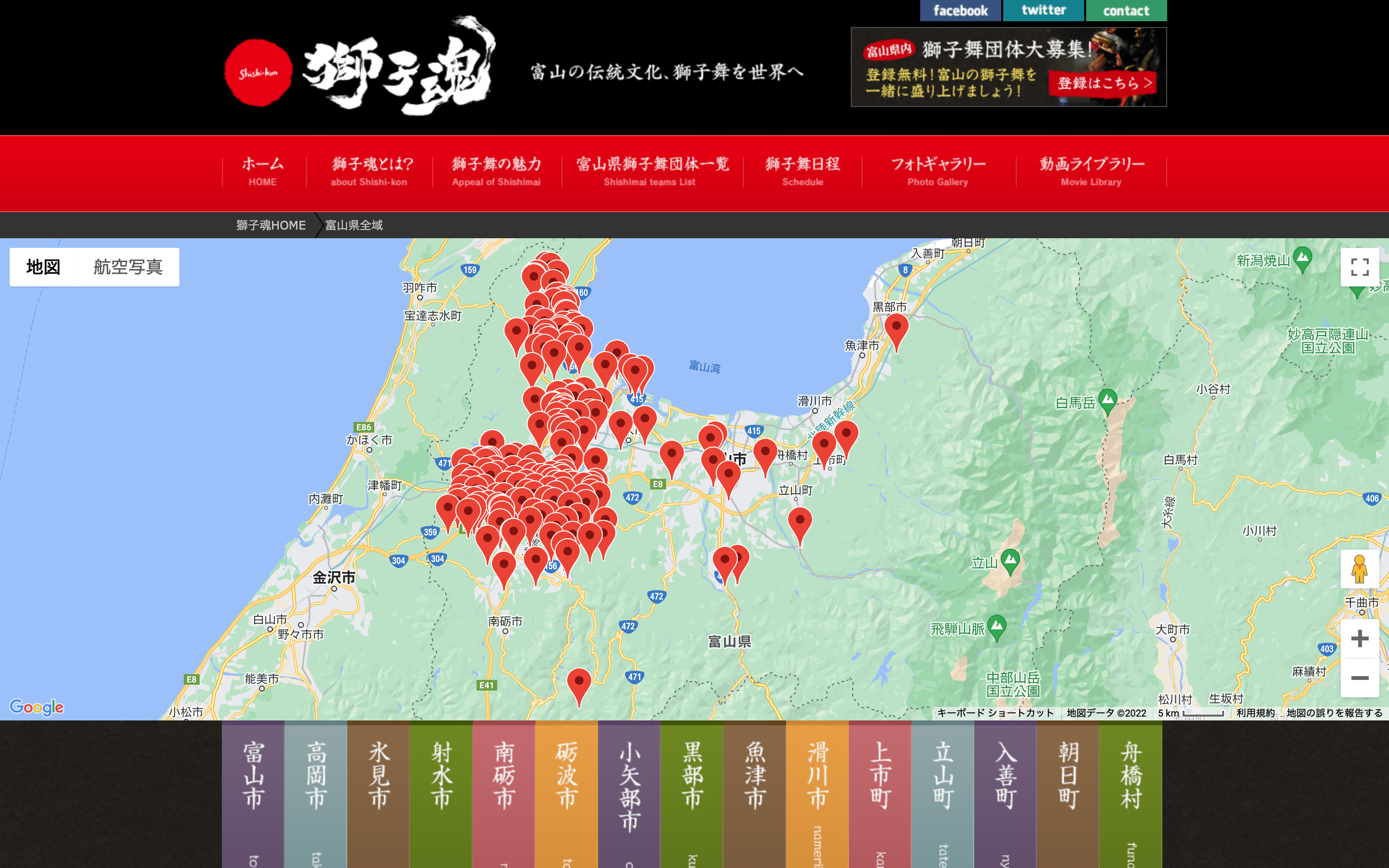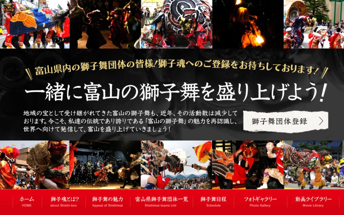 それでは早速、獅子魂についてその魅力に迫っていこう。獅子魂はこちらのwebサイトである(http://shishi-kon.com)。「一緒に富山の獅子舞を盛り上げよう!」ということで、獅子舞団体の登録を受け付けているという。コンテンツの中身として、各獅子舞団体の基本情報を登録できるようになっている。