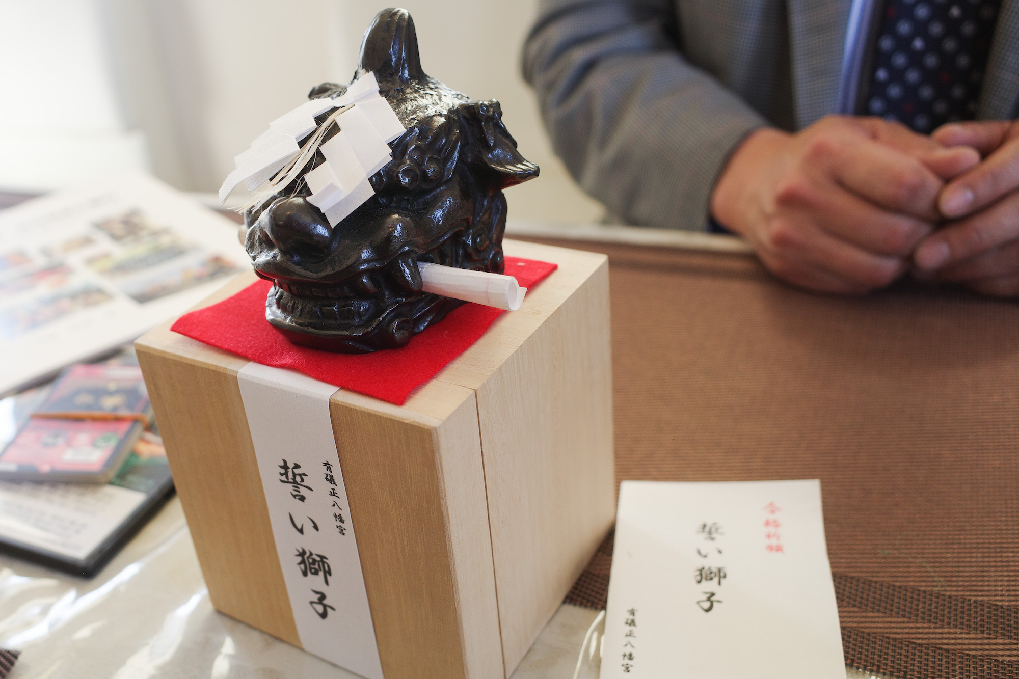 他にも高岡銅器で有名な彫刻師の方と高岡市の有礒正(ありそしょう)八幡宮のコラボレーションを行い、神社で頒布する「誓い獅子」という小さな獅子頭を製作しそれに協力したこともあったのだとか。これは受験を迎える人がその誓いを紙に書いて、邪気払いの意味で獅子に噛ませるという仕組みだ。これは受験に限らず、人生の様々なステージにおいて願いを叶えてくれる獅子にもなりそうだ。