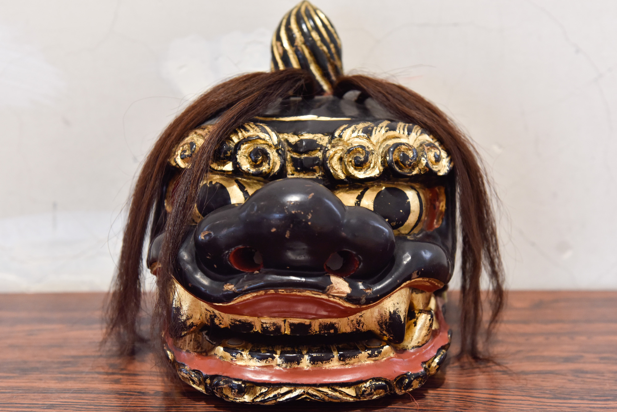 こちらは昔、昭和の時代に使っていた子供用の獅子頭だ。三ヶ獅子舞は昭和40年ごろに一度途絶えたものの、昭和50年代半ばの小杉駅竣工に合わせて復活した。