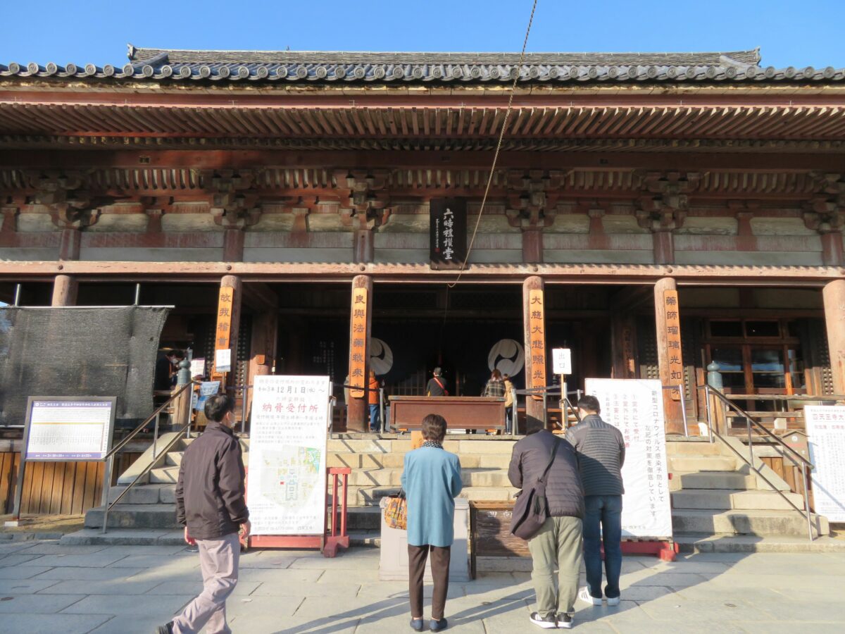 境内では中門、五重塔、金堂、講堂、石舞台、六時礼讃堂が一直線に並び建ちます。聖徳太子の命日4月22日に石舞台、六時礼讃堂を中心に行われる「聖霊会舞楽大法要」は、寺院で最も重要で大規模な年間行事です。