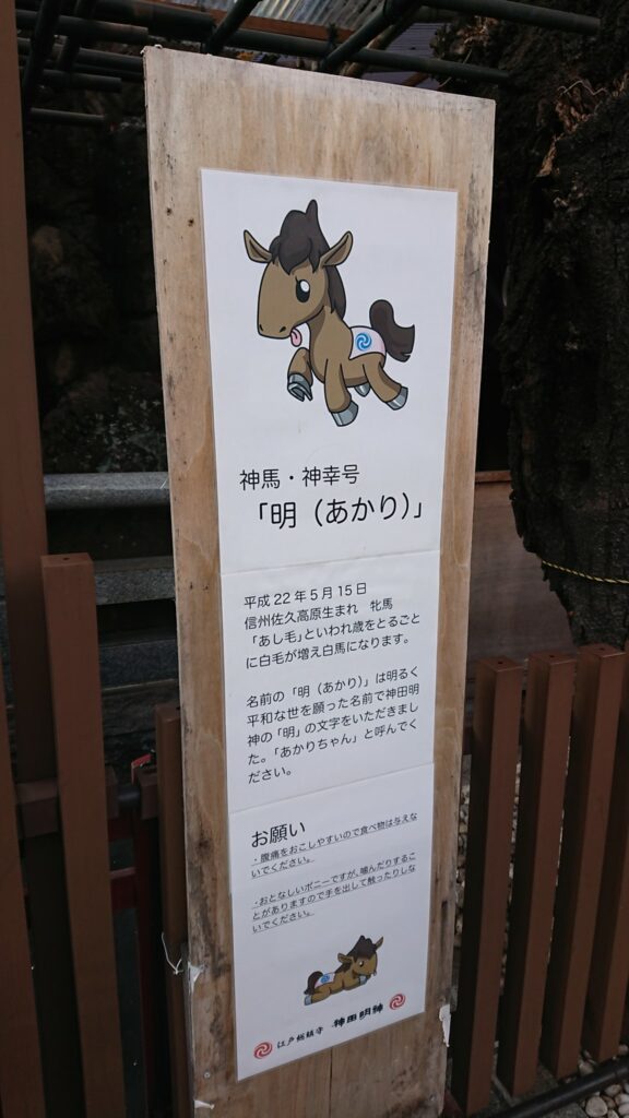 そのような歴史を持つ神田明神ですが、神社の境内に御神馬・神幸号「明」、通称あかりちゃんがおります。