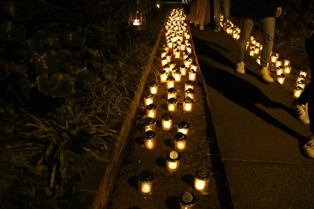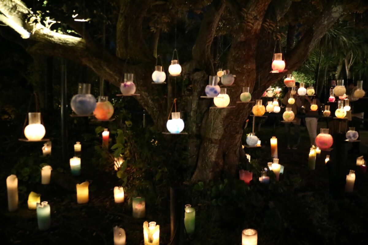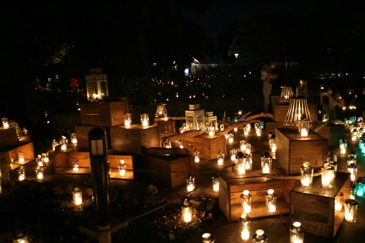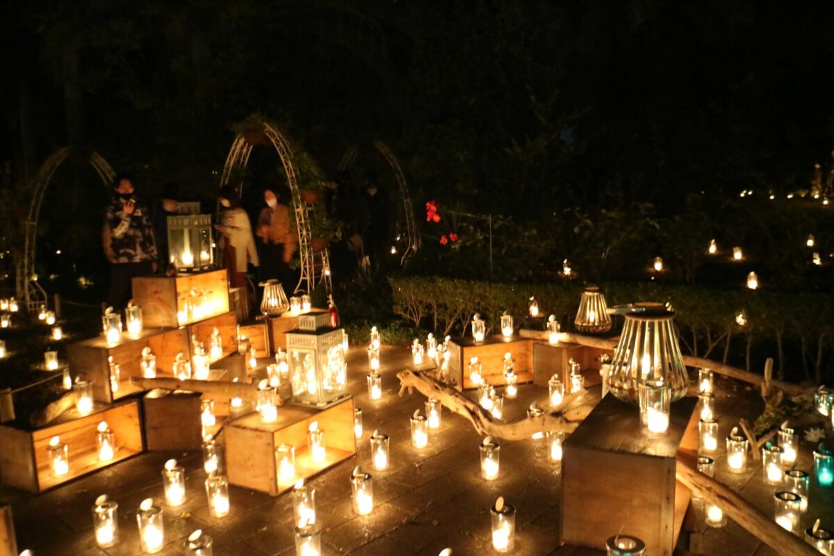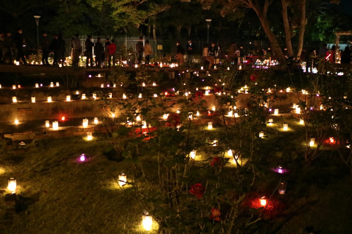 サムエル・コッキング苑の園内は、約8,000基のキャンドルライトで照らされます。園内には遊歩道が設けられ、和かな光に包まれる空間をゆっくりと散歩することができます。