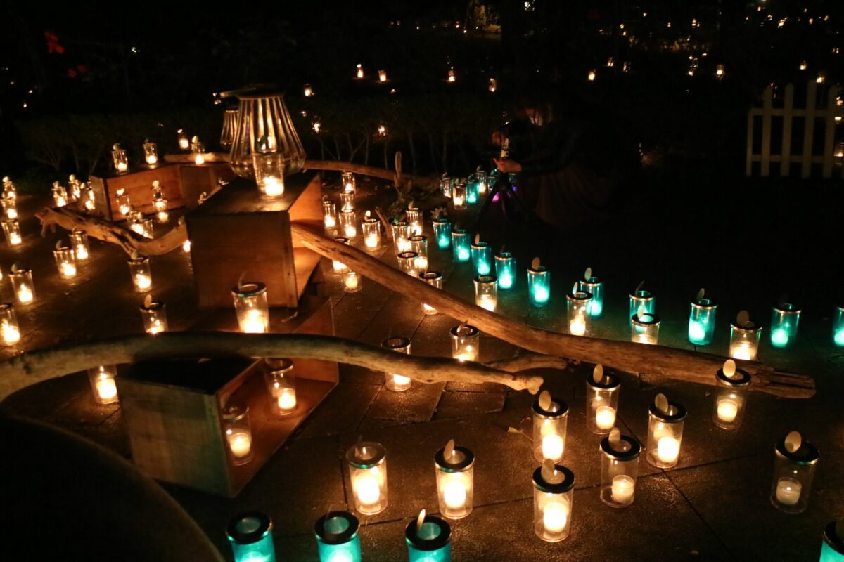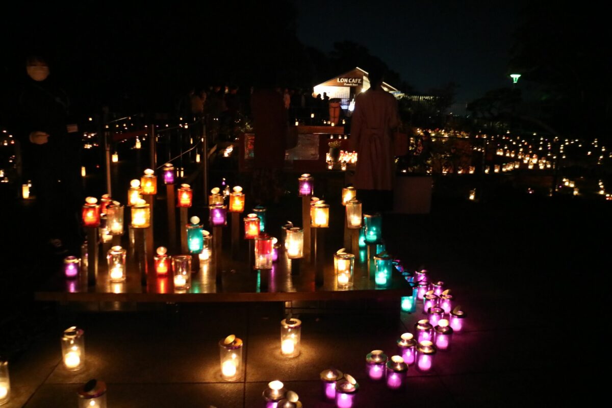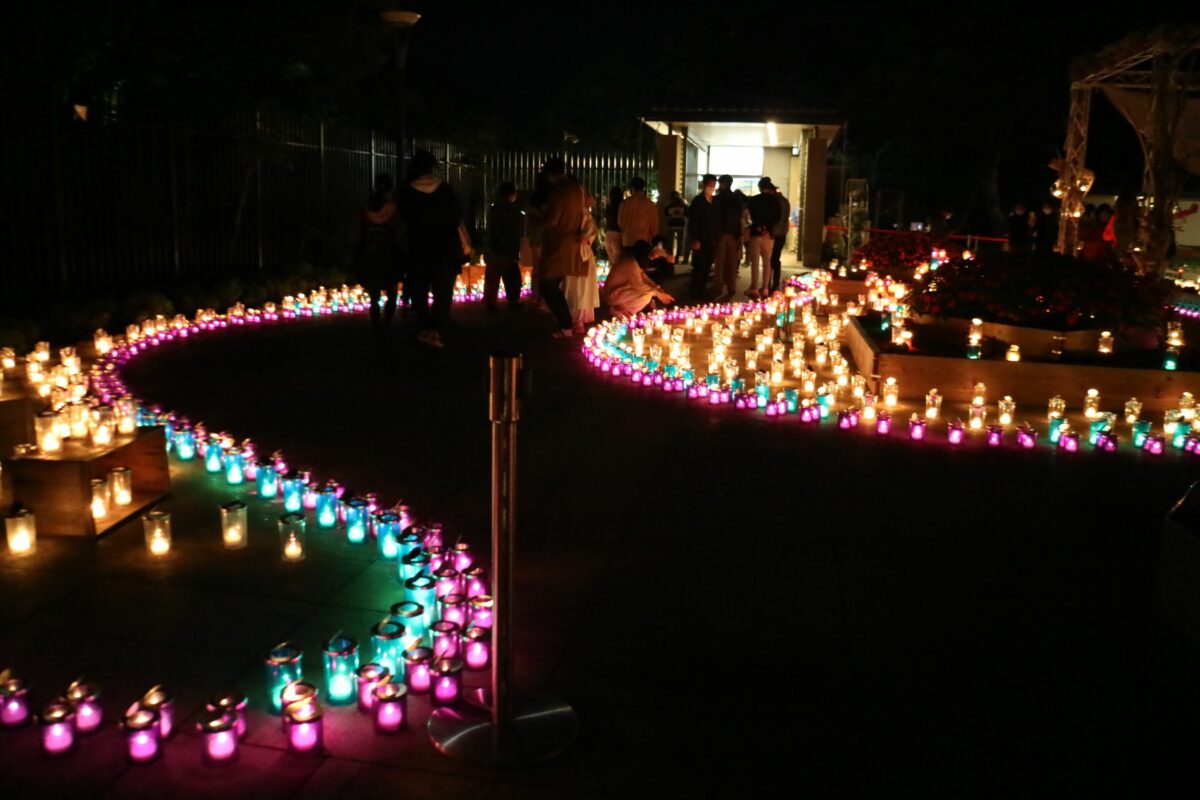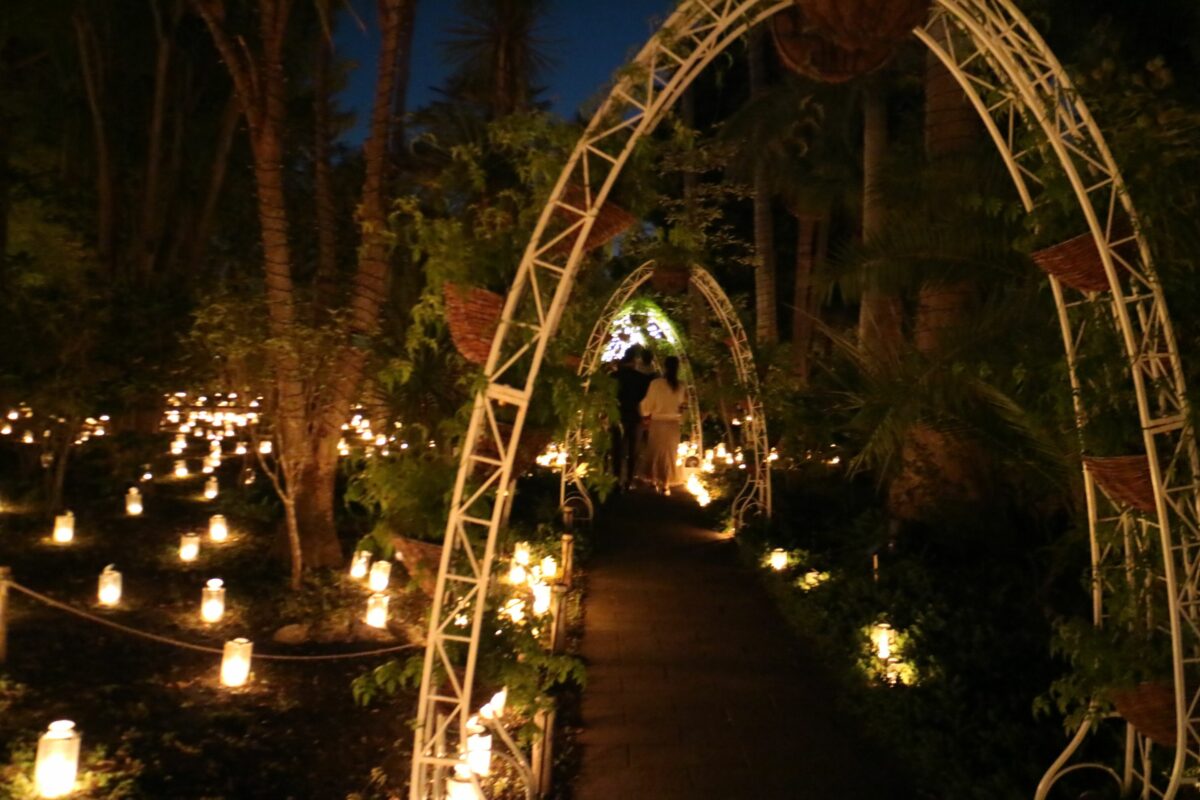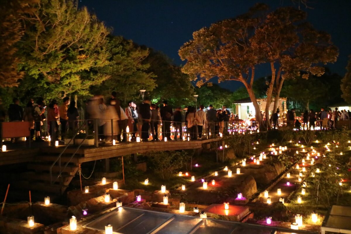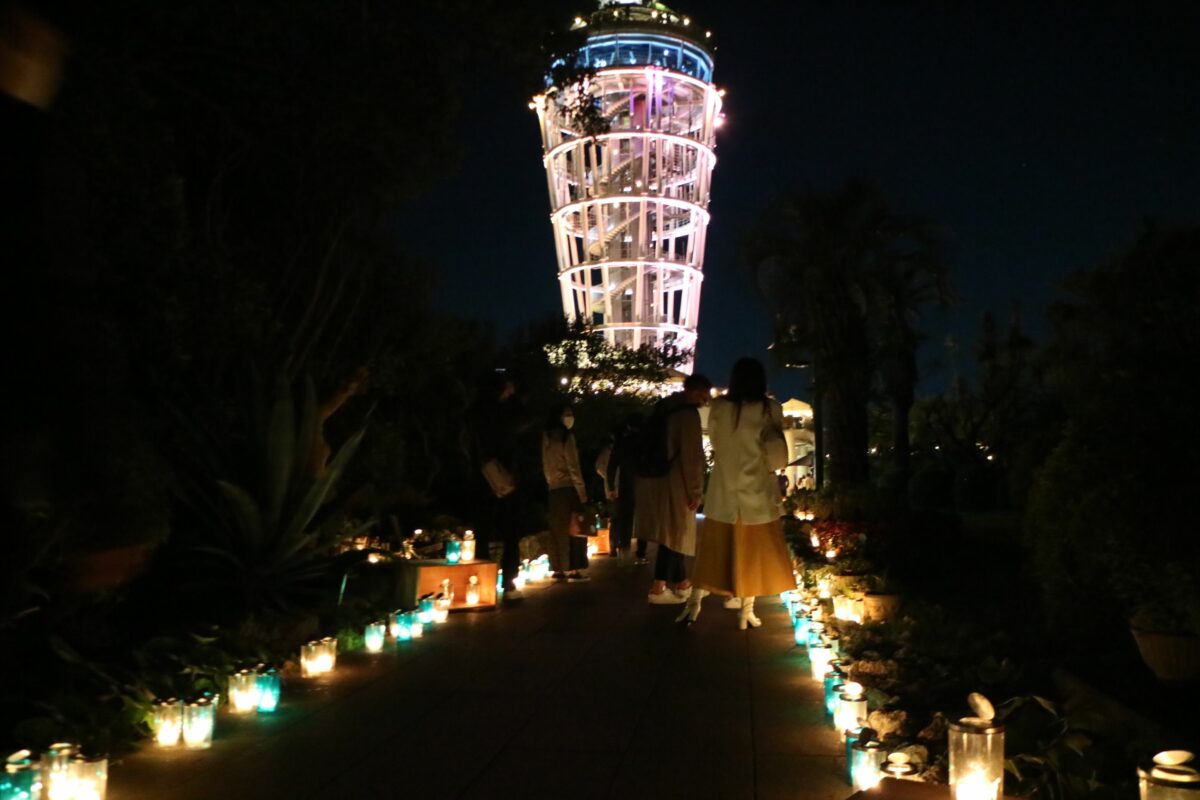 神奈川県藤沢市の江の島のほぼ中央に位置するサムエル・コッキング苑では、例年10月中旬から11月上旬の夜に「湘南キャンドル」が開催されています。園内には約8,000基のキャンドルライトに灯が点され、幻想的な雰囲気が漂います。