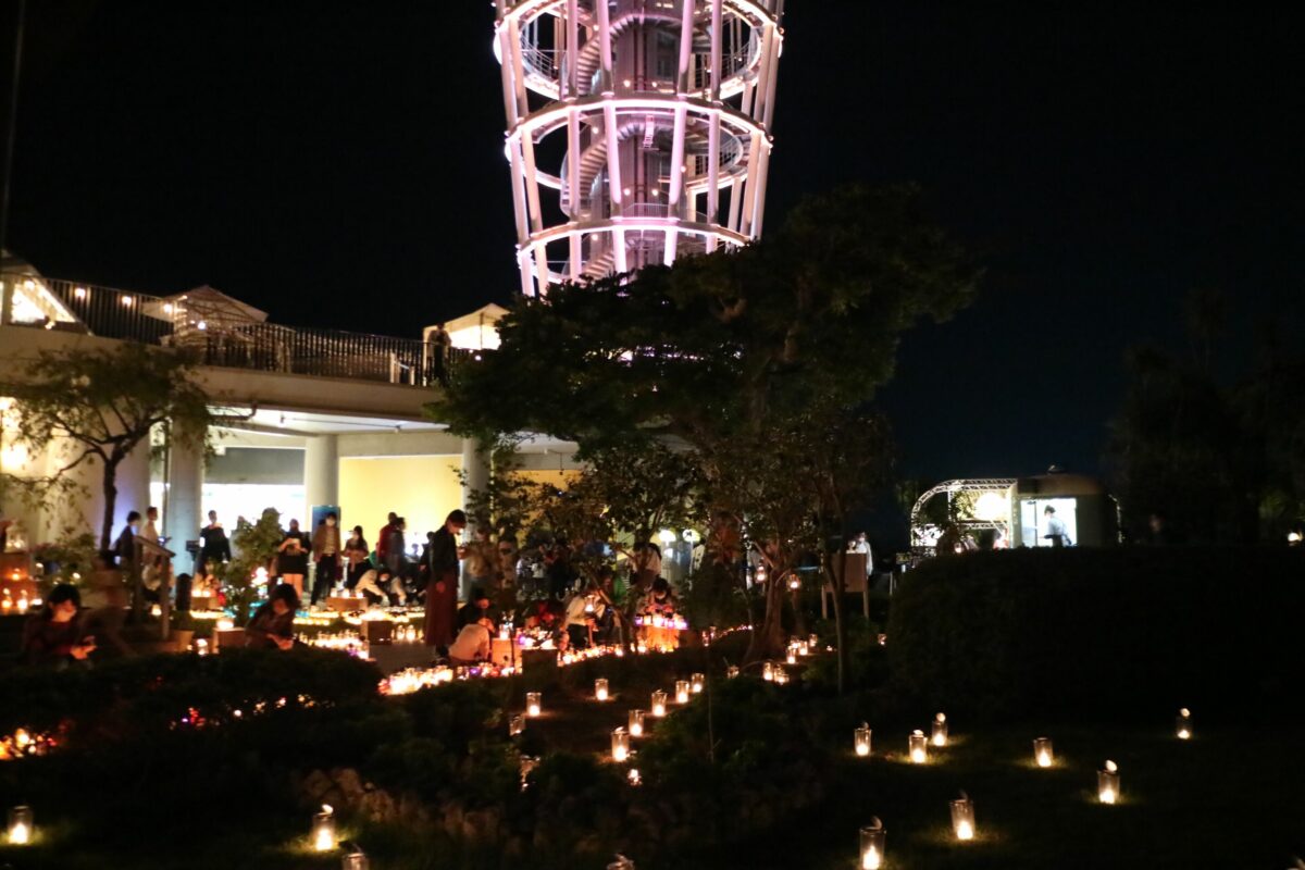 シーキャンドル下の広場は、サンセットテラスとなり、キャンドルライトが魅惑的な光の演出を行っています。