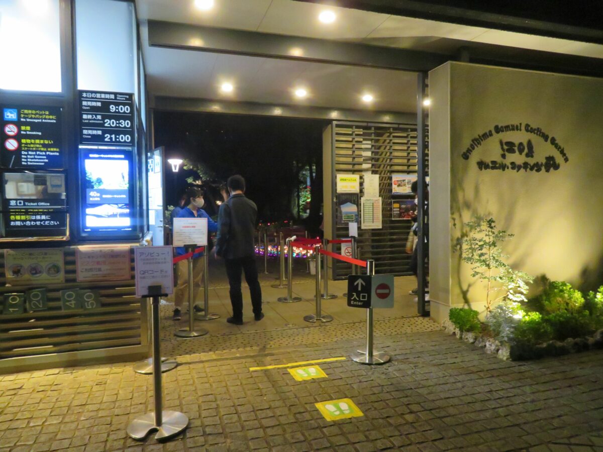足元が柔らかな光で包まれるサムエル・コッキング苑の入口広場