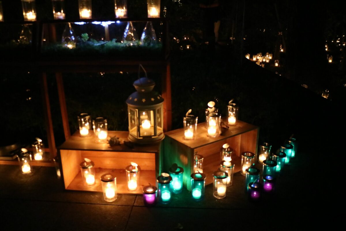地面いっぱいのキャンドルライトで照らし出されるゲート
