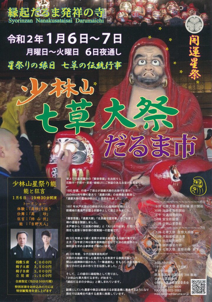 天明の飢饉のため苦しい生活をしていた農民を救った「少林山七草大祭だるま市」