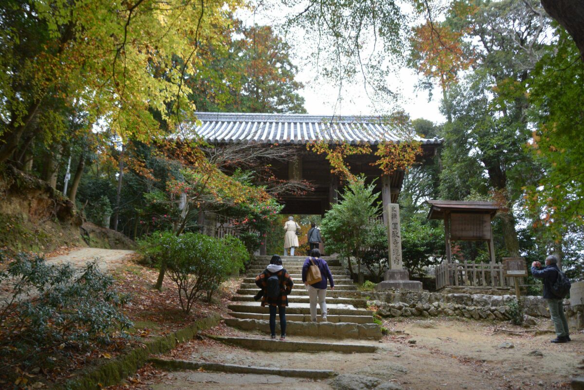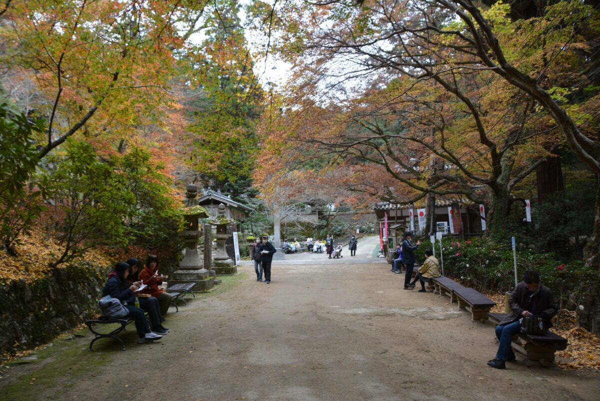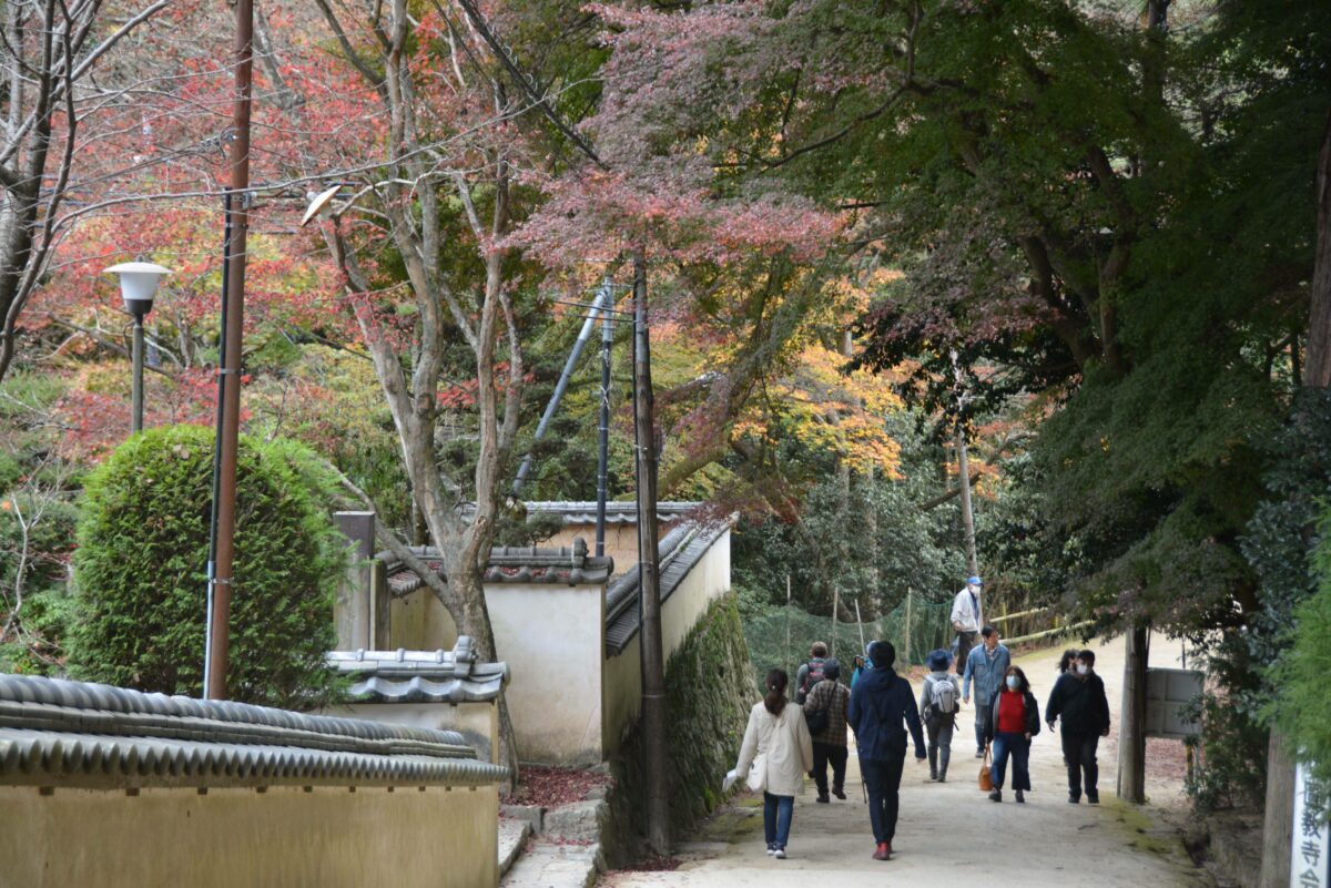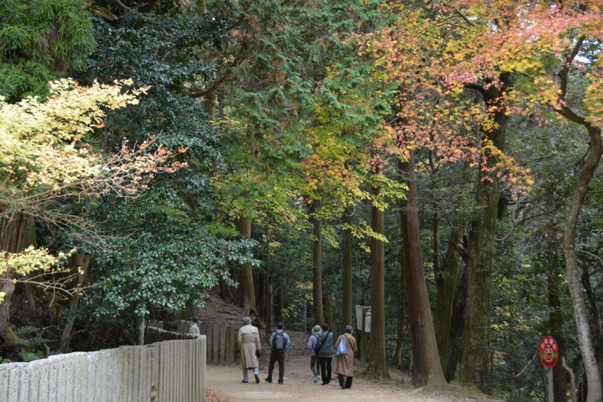 仁王門から摩尼殿に向かう山道は、概ねなだらかですが、所々傾斜のきつい坂道もあるので歩きやすい靴を履いておきたいものです。
