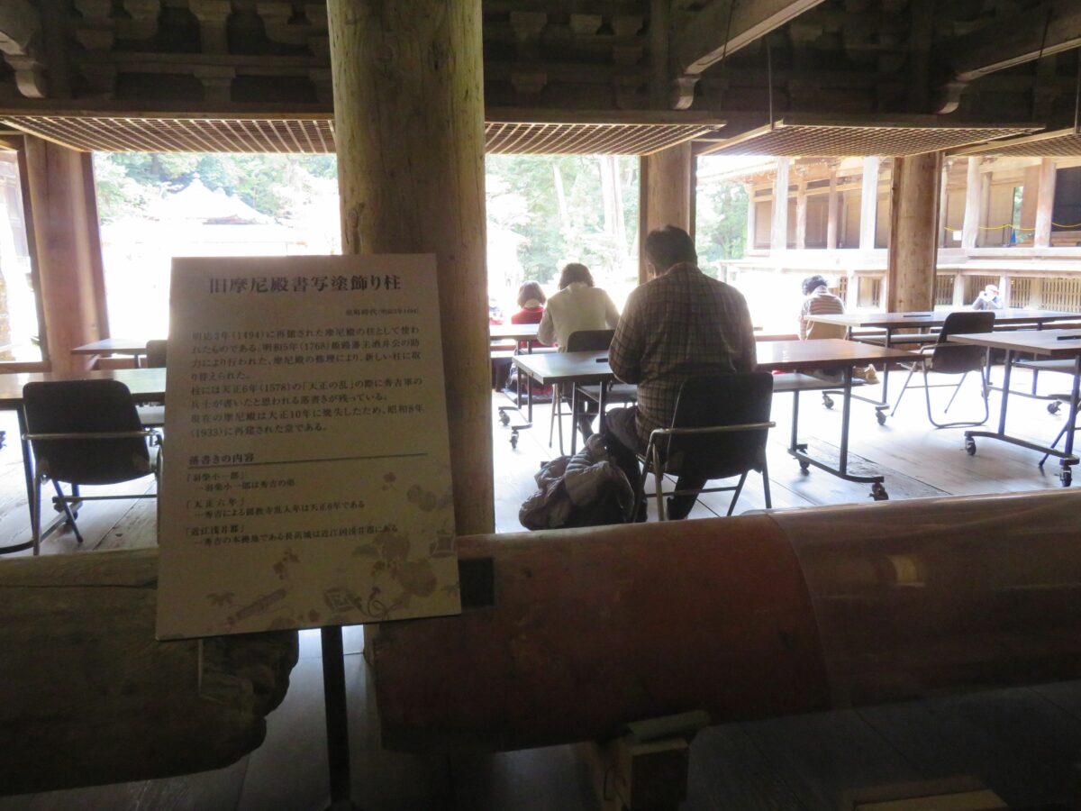 「食堂」では緊張感が漂うはりつめた空間で、静かに写経を行うことができます。展示室では、弁慶が勉学のときに使ったと伝わる「弁慶の机」が公開されています。また「食堂」の北隅には「弁慶の鏡池」と呼ばれる井戸があります。顔にいたずら書きをされた弁慶が、井戸の水面に顔を映したと伝わります。
