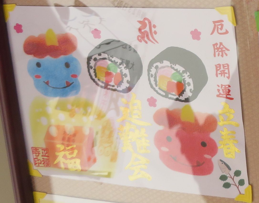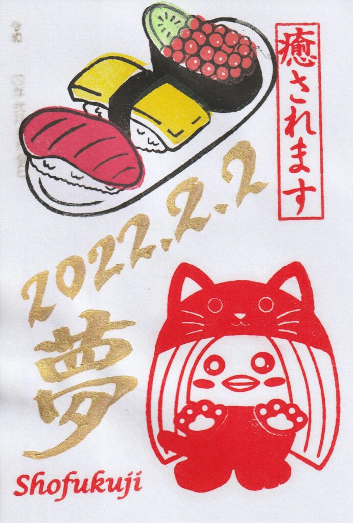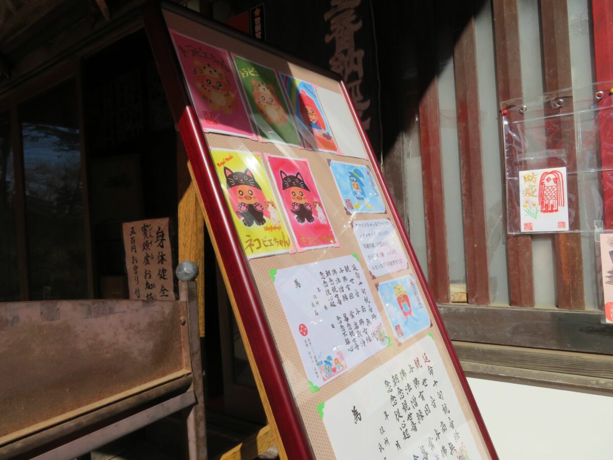 「アマビエちゃん」の姿には愛らしさが感じられますが、仏教信仰の伝統が漲る梵字が記された御朱印の頒布も行われています。金色の梵字に大黒天の笑顔が描かれる御朱印には、大黒天のカード型お守りと絵馬が添えられます。