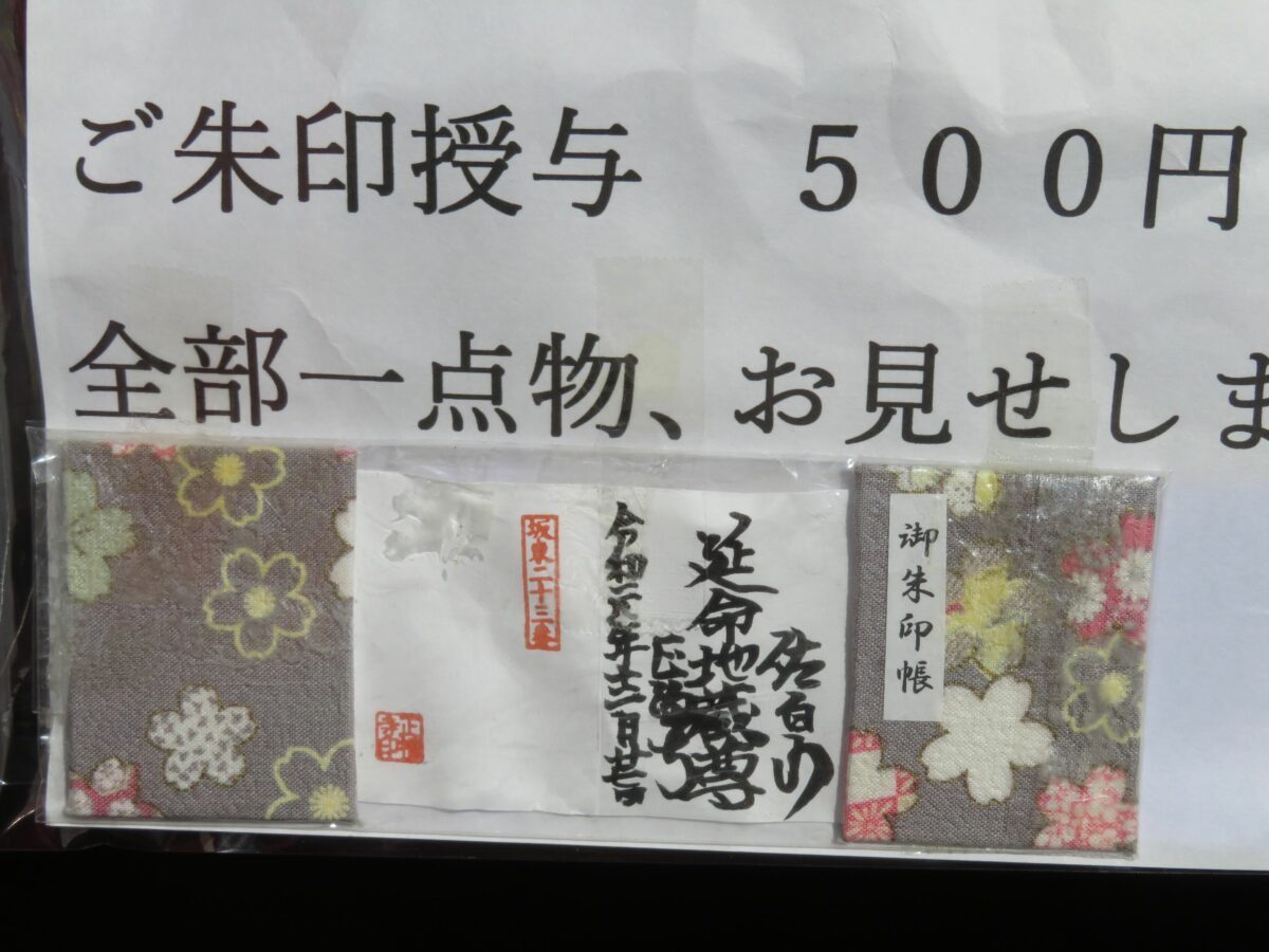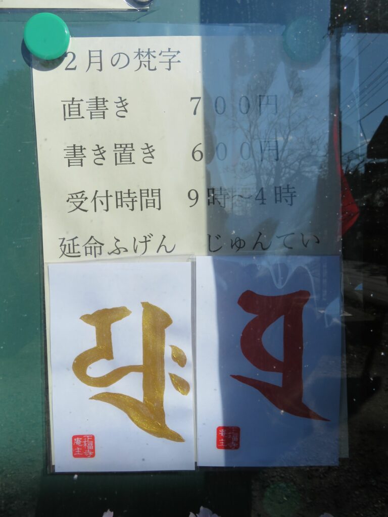 金色と赤色の梵字のみが記される2種類の御朱印案内