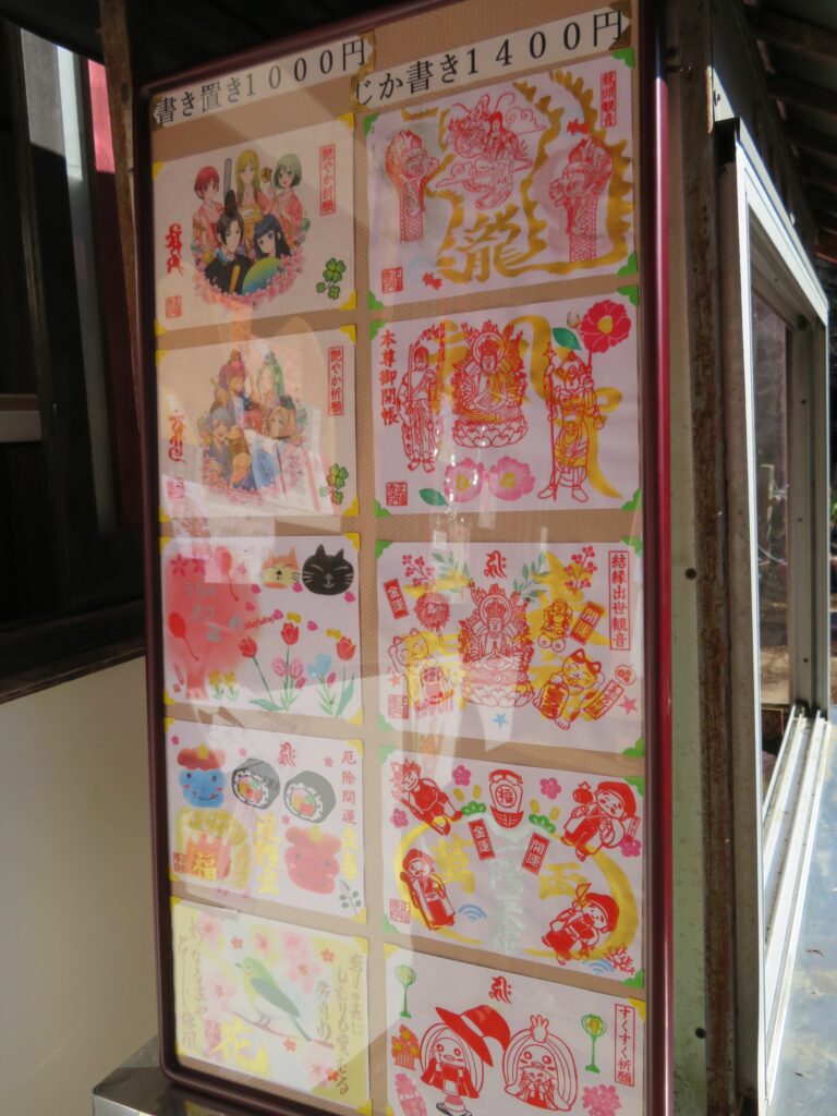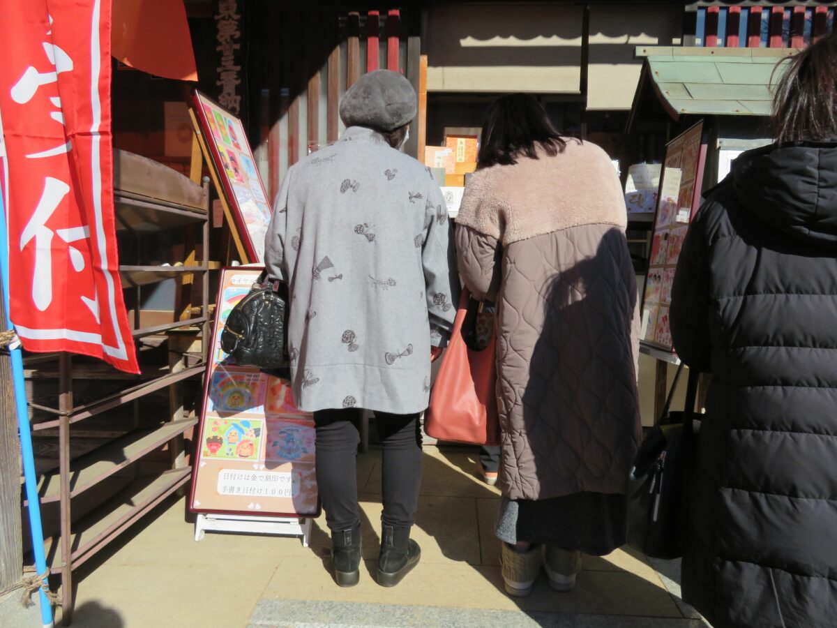 御朱印の受付窓口は案内ボードで取り囲まれ、何種類の御朱印が頒布されているのか正確に把握することは難しそうです。おそらく常時30種類前後の御朱印を揃えているようです。オリジナルの御朱印帳も数種類、並んでいます。