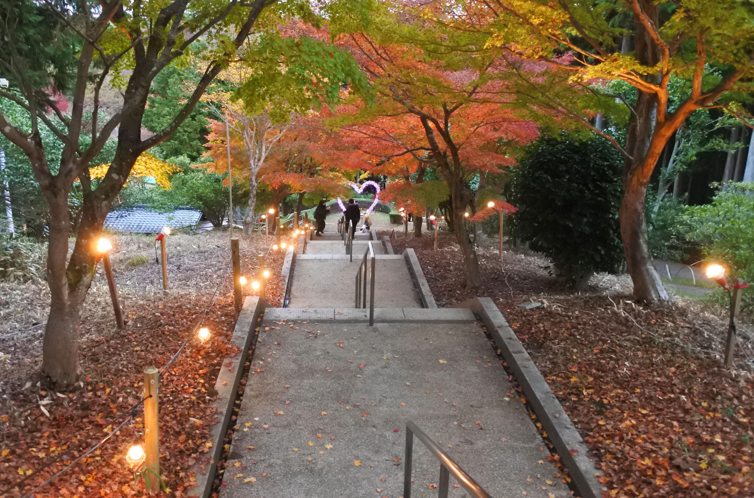 こちらでは、日本庭園や匠の村で紅葉が楽しめます。11月12日~12月4日はライトアップも行われていました。