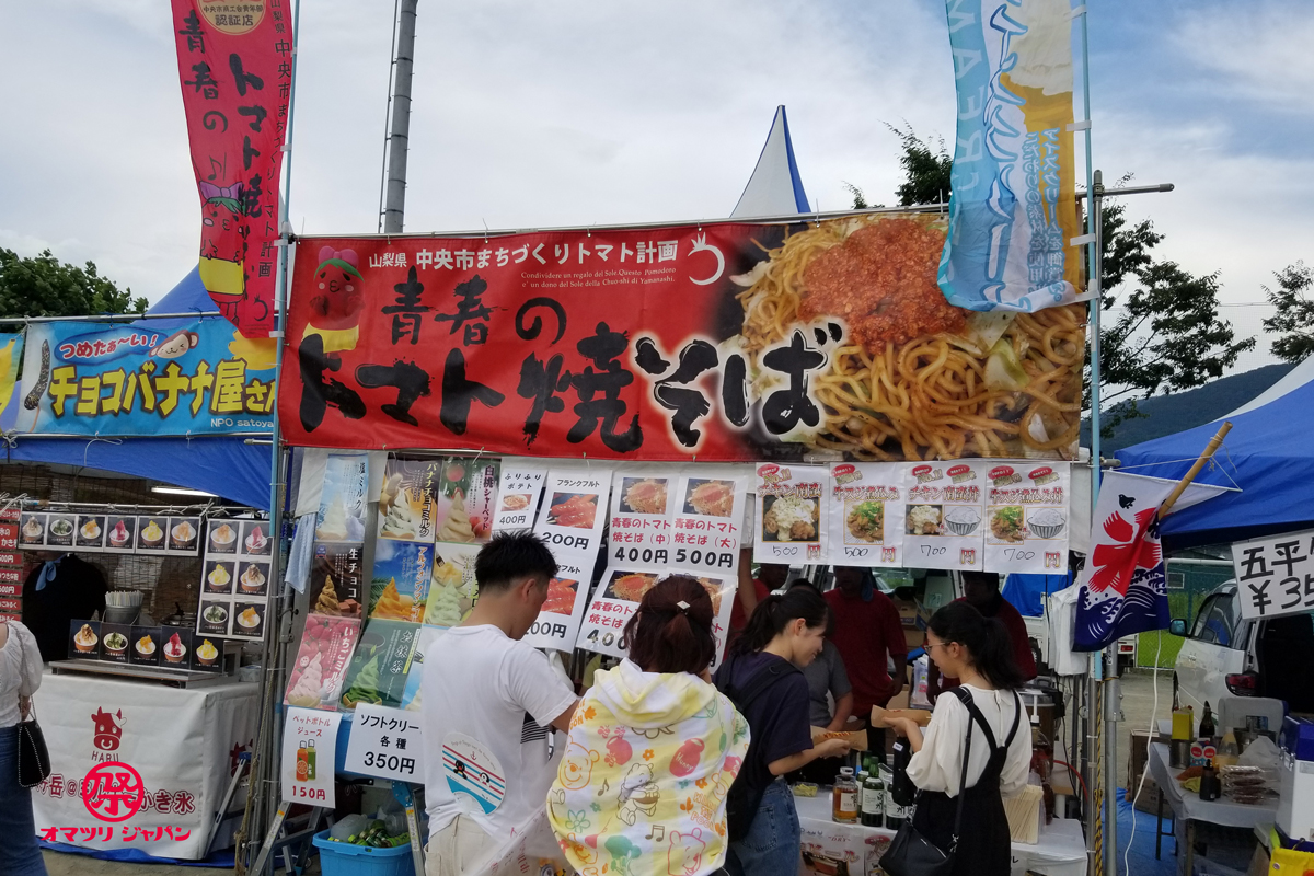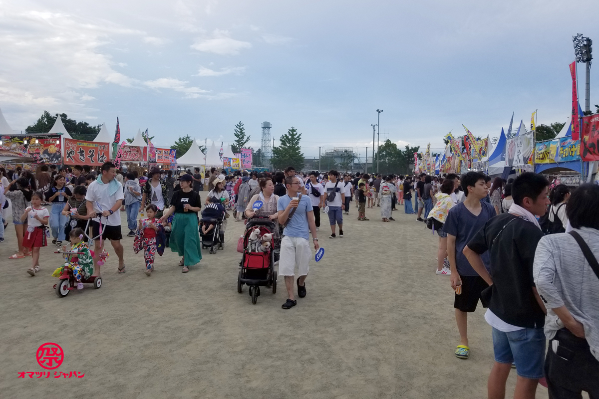 グラウンドの奥に進むと数多くの屋台が並び、地元の名産を売りにした商品も沢山ありました。やはり全国区の花火大会の屋台は他県からの来場者に地元の売りをアピールするべきです。