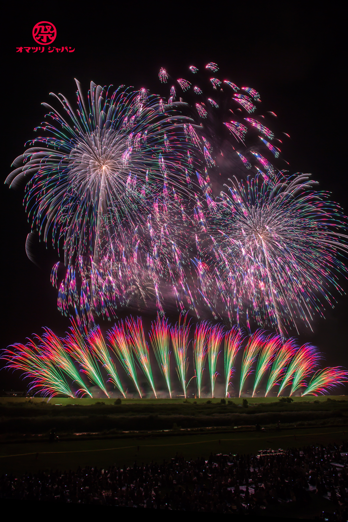 企業協賛によるスターマイン。仕掛け花火で企業名が入っていたり、中には二尺玉を含める企業も!途中のプログラムでも良質な花火が上がるので目が離せません。