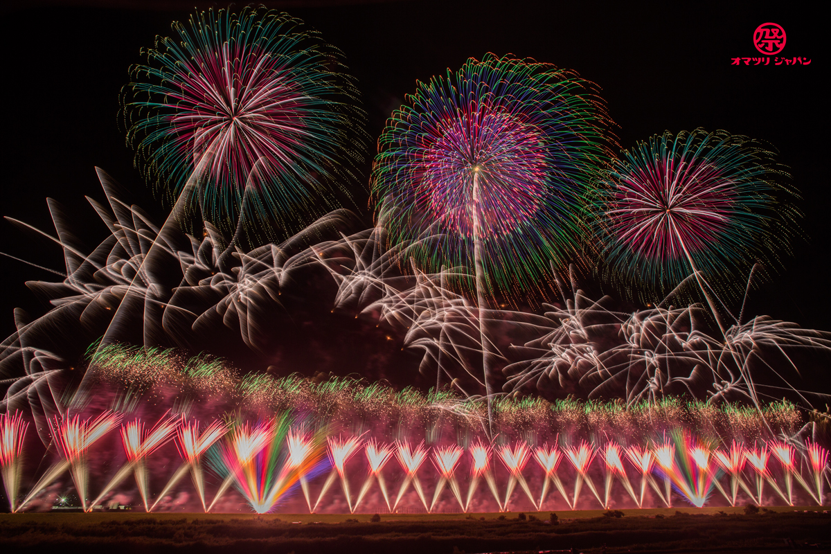 担当煙火店である齊木煙火本店とマルゴーが芸術玉を1発ずつ丁寧に交互に打ち上げるプログラム。端正な円を描き芸術の粋を集めた花火ばかりが打ち上がります。