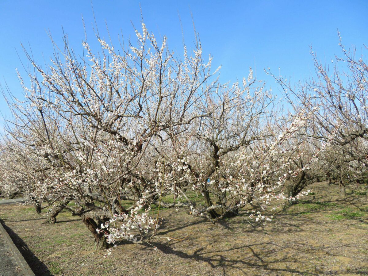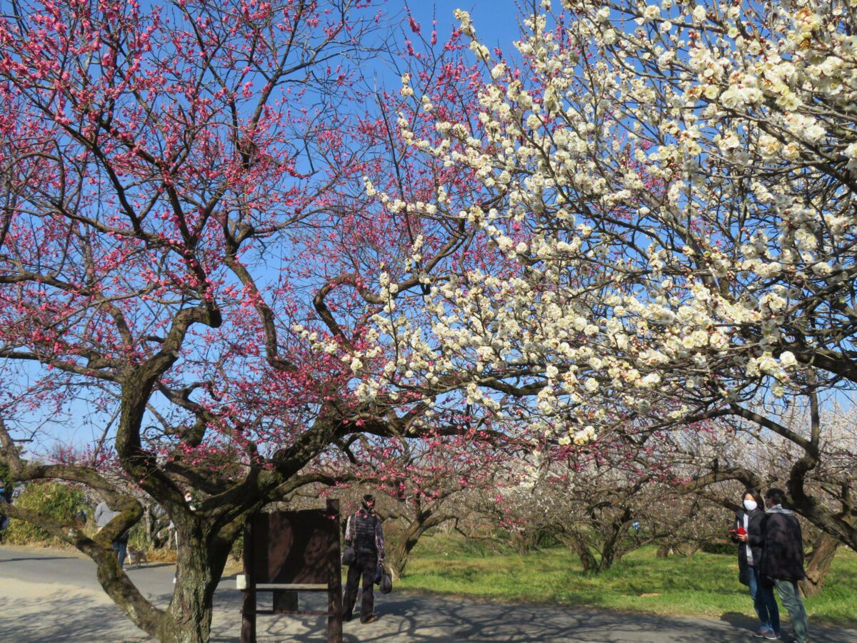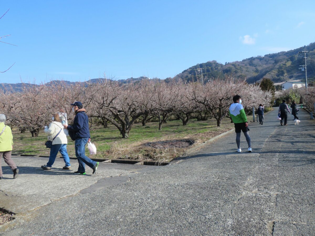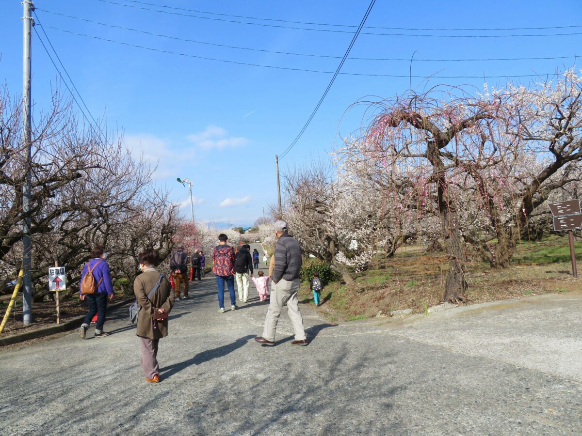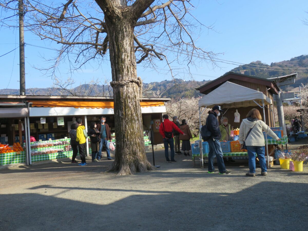 梅林の中央には案内所や仮設トイレが設置され、売店や露店が登場し、梅の加工食品、地元の農作物、梅の盆栽が販売されています。ただ2021年は新型コロナウイルス感染防止のため、うめの里食堂の営業は行われず、流鏑馬、寿獅子舞、餅つきなどのイベントは中止となりました。