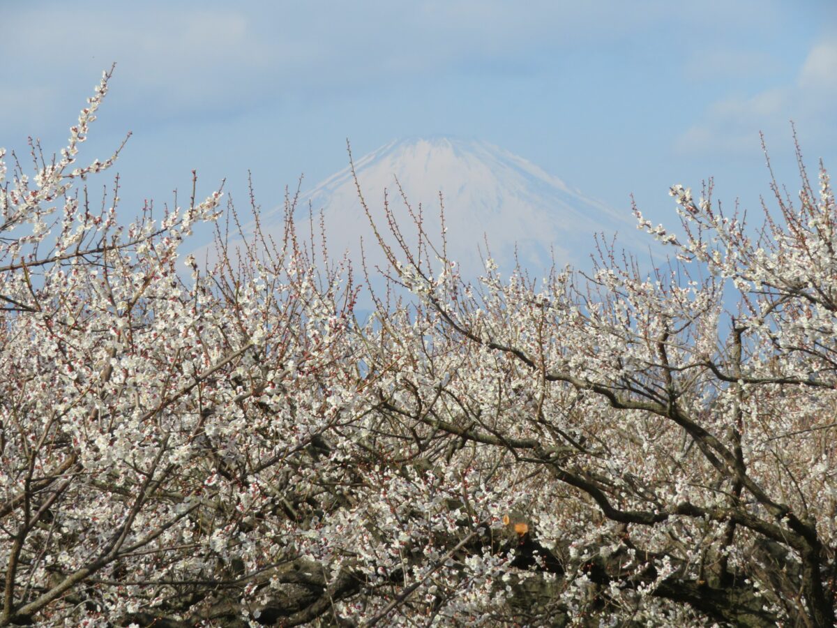 神奈川県小田原市の曽我別所では、梅林の西方に富士山が聳えています。例年2月上旬から3月上旬にかけて「曽我別所梅まつり」が開催され、富士山を背景とする梅の花を楽しむことができます。