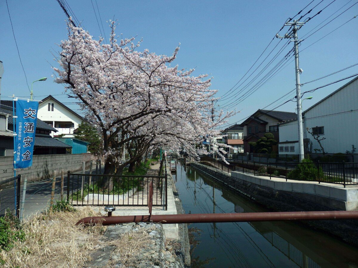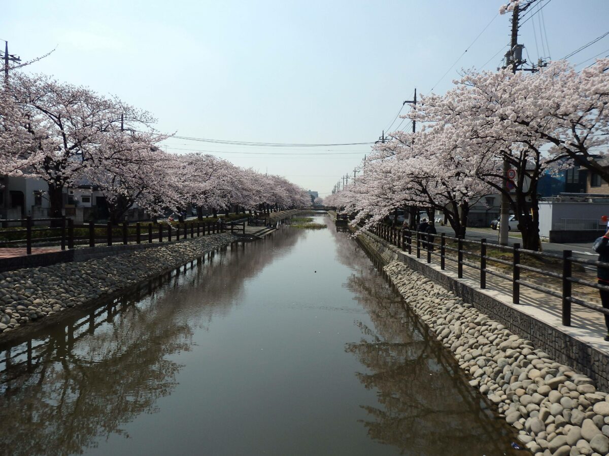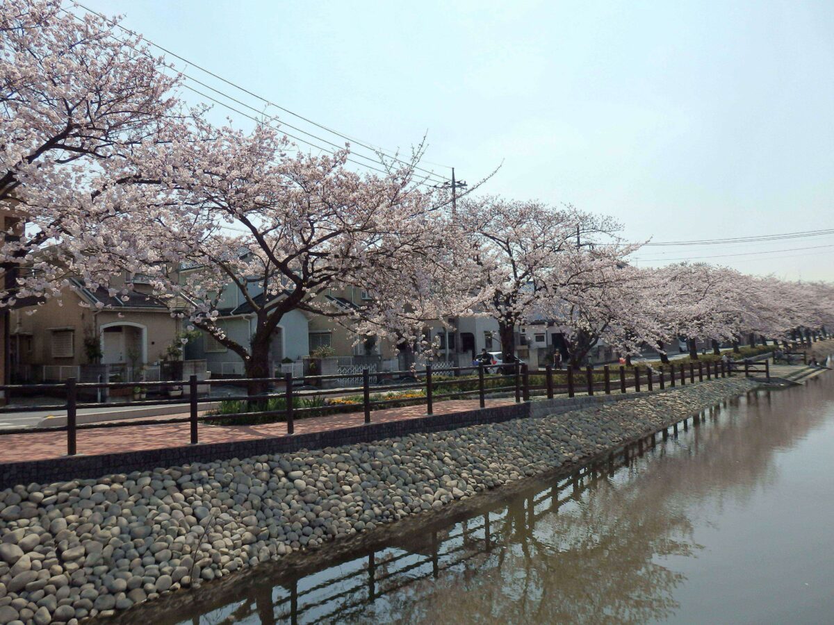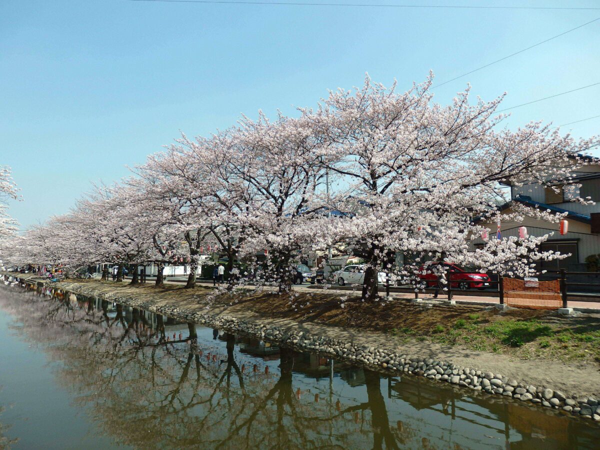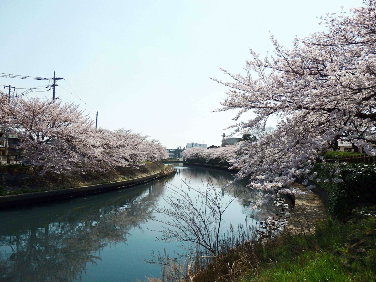 埼玉県草加市の東部に江戸時代に開削された葛西用水は、日本三大農業用水に数えられています。水路に架かる稲荷橋を挟んで約2キロの両岸には約450本の桜が植栽され、例年3月下旬から4月上旬には水面に季節の彩りが映り込みます。