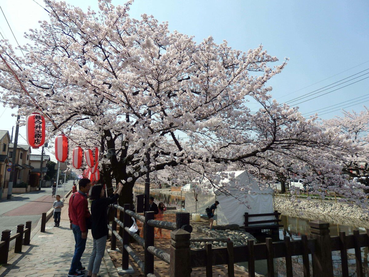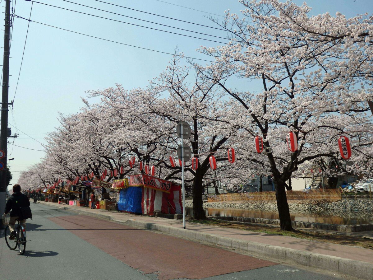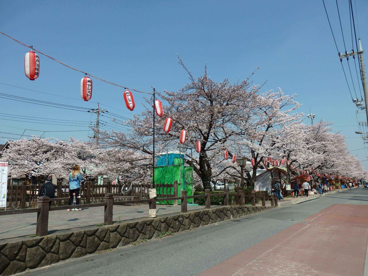 「草加さくらまつり」が開催されると、並木のほぼ中央の稲荷橋付近には露店が姿を現します。