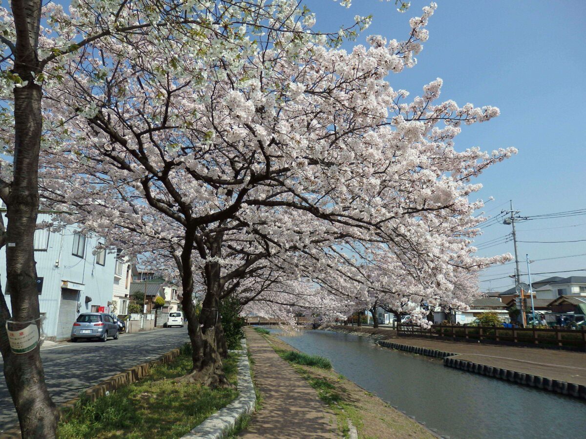 草加市の葛西用水の桜、1978年に100本が植樹されたことに始まり、現在では約450本が並木を作っています。約2キロの用水路が薄紅色で彩られます。用水には季節の彩りが映り込み、水面にも桜並木ができあがります。