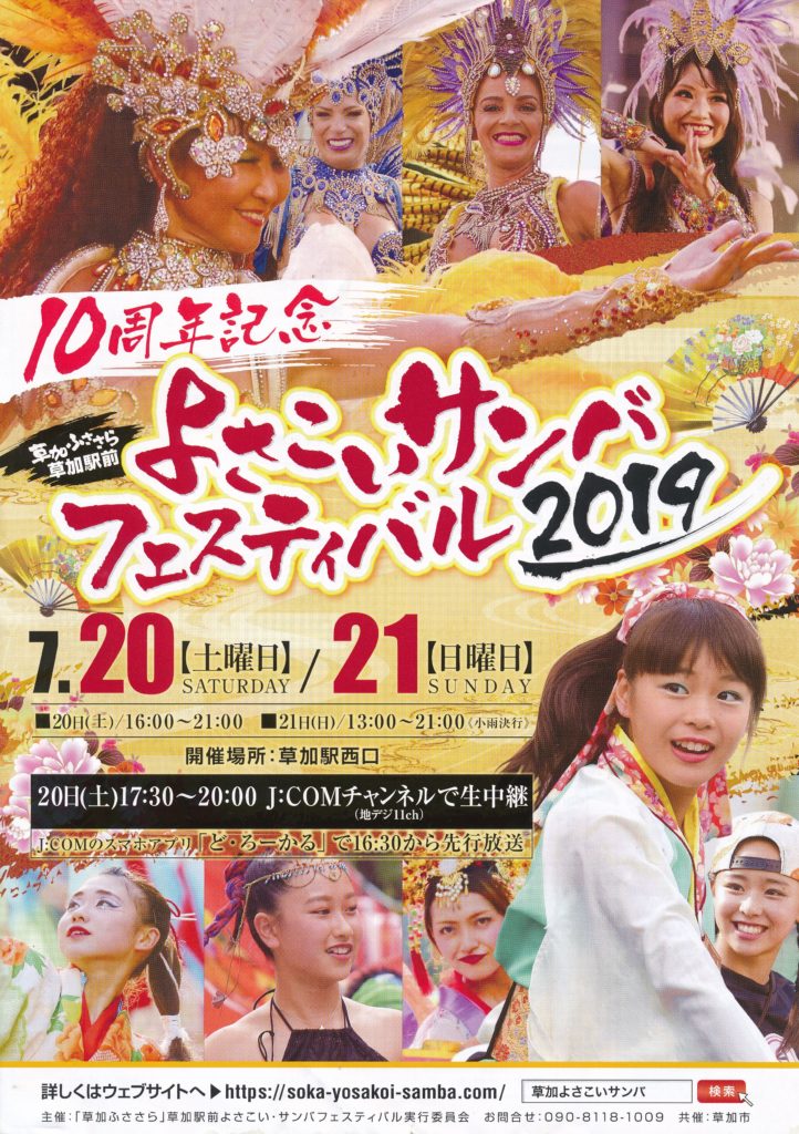 「草加よさこいサンバフェスティバル」2019のチラシ