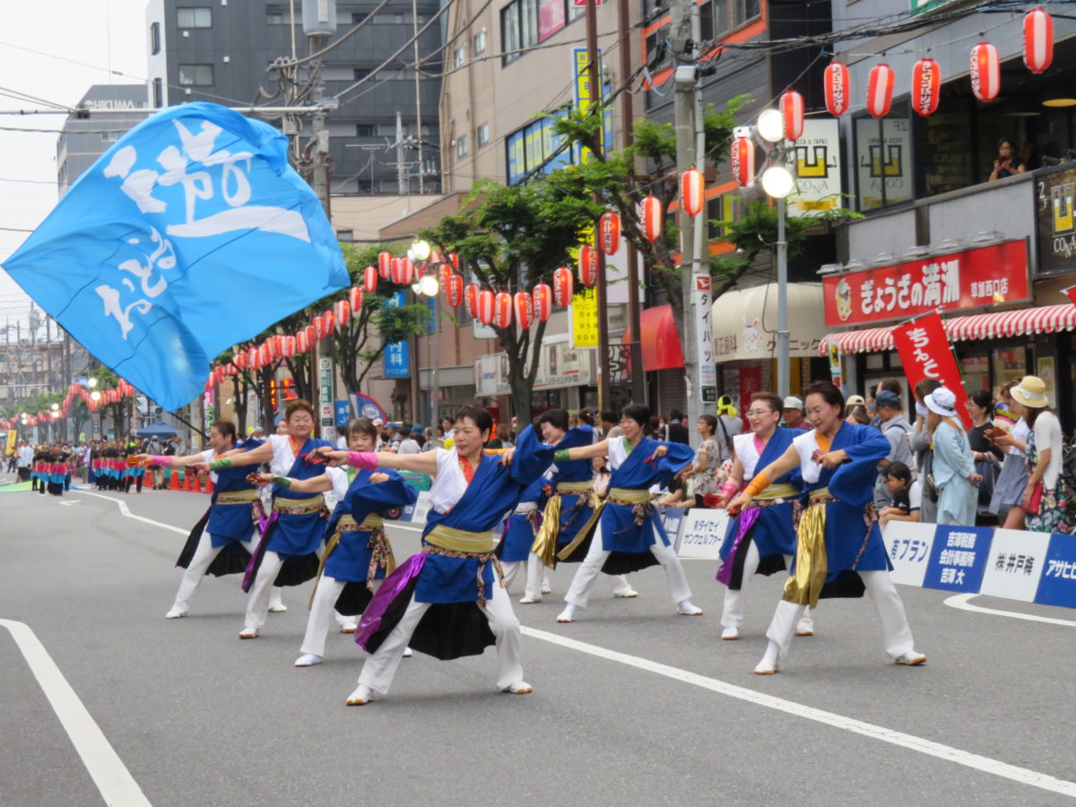 駅前ロータリーでの「チーム清門」のよさこい演舞
