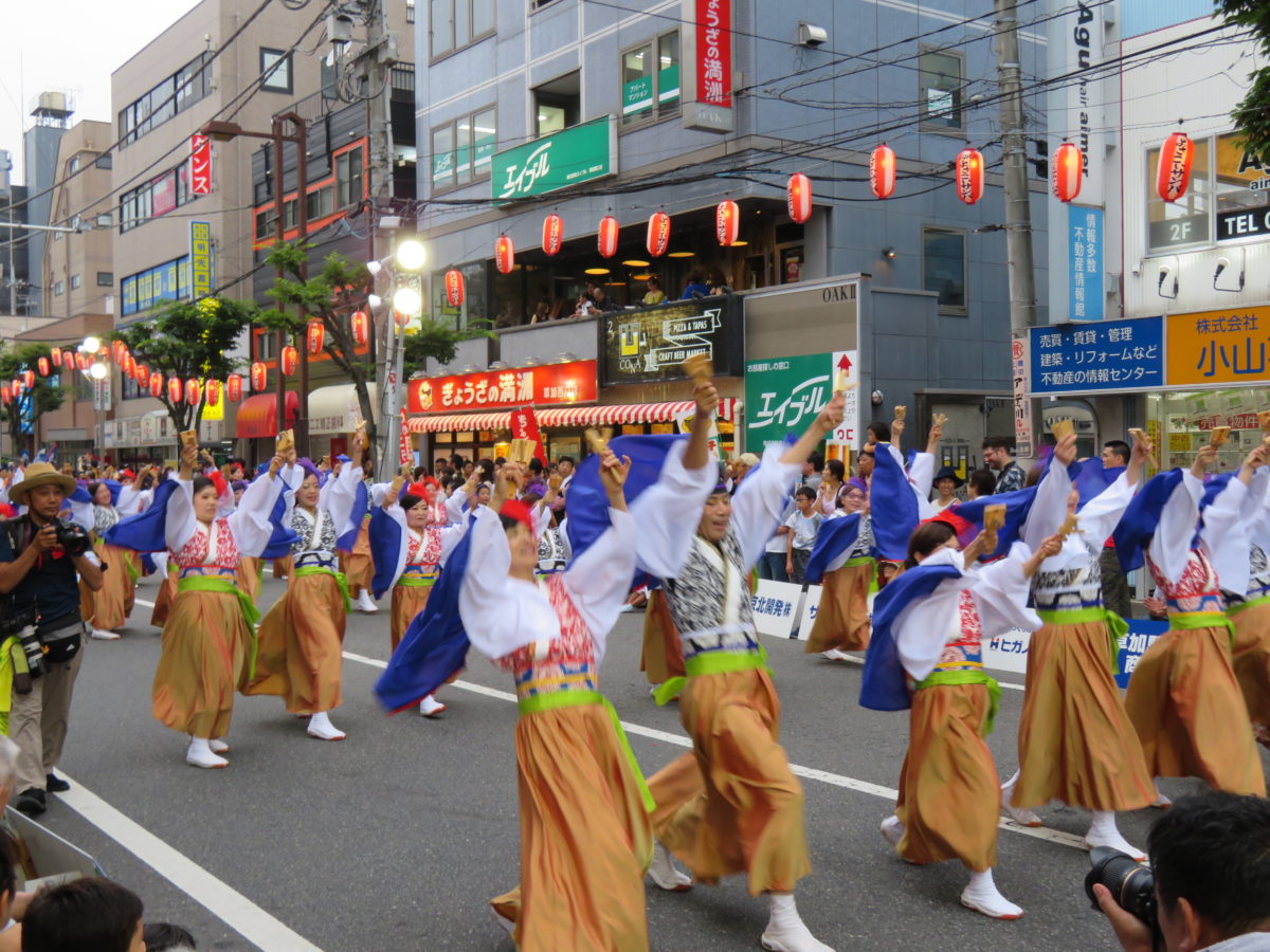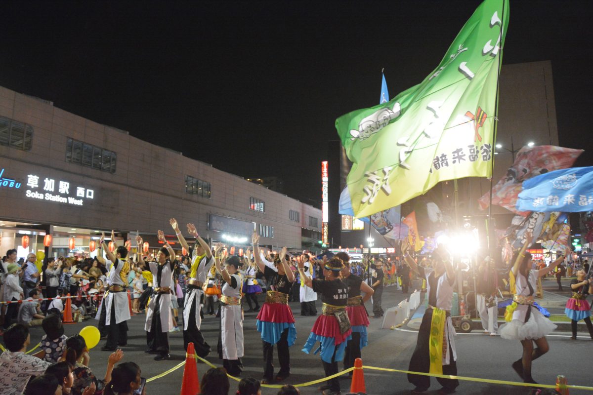 「草加よさこいサンバフェスティバル」は、毎年7月下旬の土日の2日間、埼玉県草加市で行われるお祭りです。「よさこい」、「サンバ」それぞれをテーマにしたおまつりは全国各地で数多く行われていますが、草加ではこの2種類の踊りを同じ日に、同じ会場で見ることができます。会場は、東武スカイツリーライン「草加」駅の西口エリアのロータリーと駅前通り。長さ500メートル足らずの空間に、2つの踊りがシンクロし熱気で溢れます。