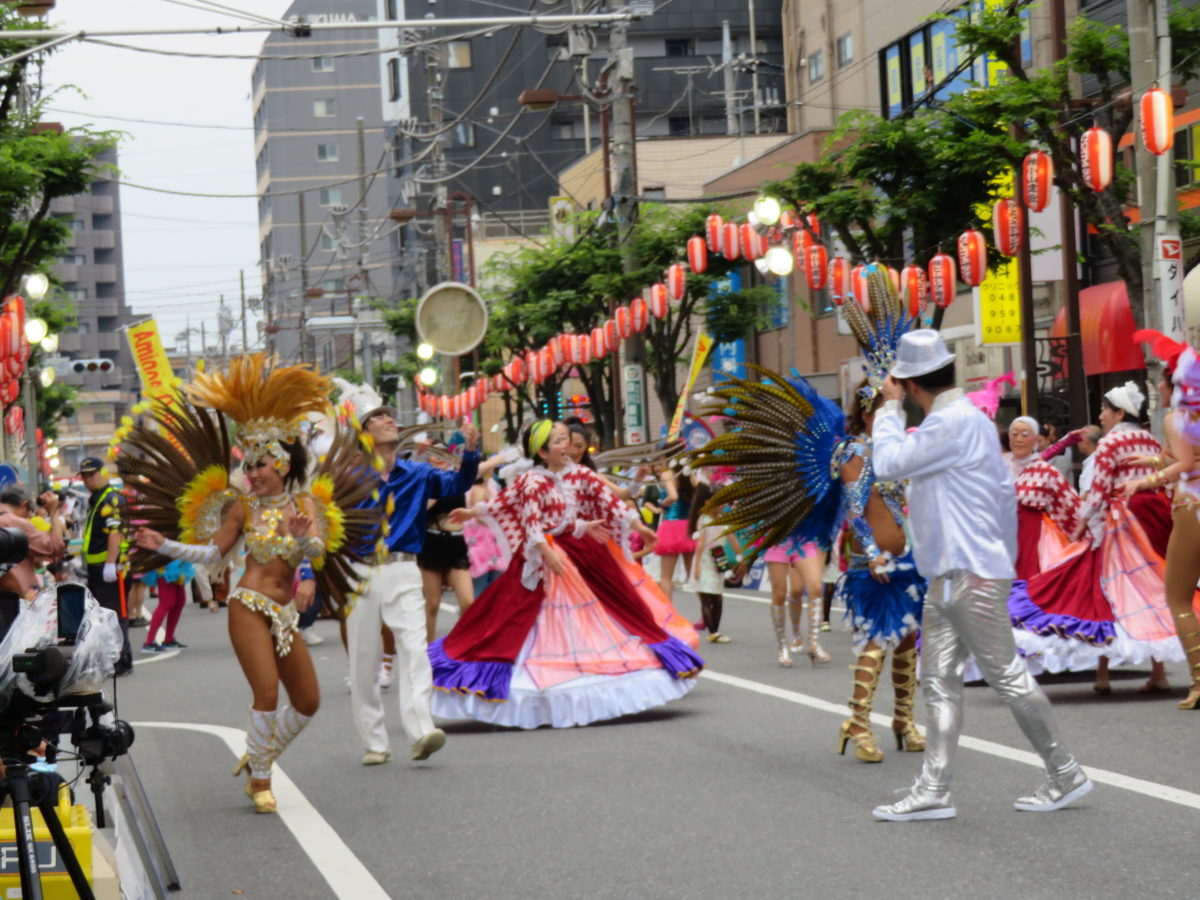 サンバの流し踊りをする「草加サンバプロジェクト」