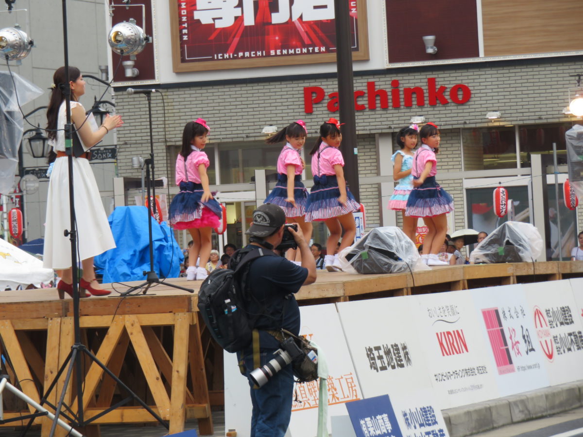 駅前ロータリーの特設ステージでの「おSENちゃんガールズ」のパーフォーマンス