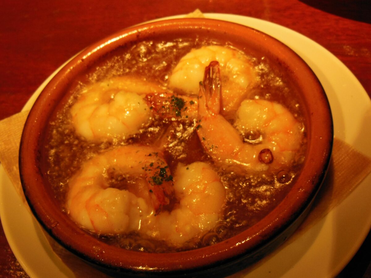 セゴビアは内陸部にあるため新鮮な海の幸には恵まれませんが、地中海に面するバルセロナでは海の幸が極めて豊富です。海岸に沿って数多くのシーフード・レストランが軒を連ねているので思う存分、地中海グルメを味わうことができます。ガンバ・アル・アヒージョは、エビをニンニク入りのオリーブオイルで煮込みます。パエリア・アロス・ネグロは、イカ墨のパエリアです。
