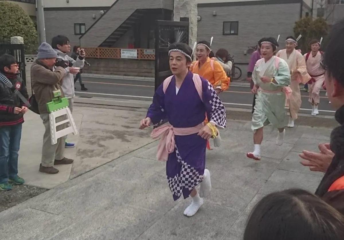 毎年2月、ちょうど東京マラソンと同時期に、東京江戸川区の東葛西を着物姿の青年たちが7時間かけて駆け巡るお祭りが開催されます。