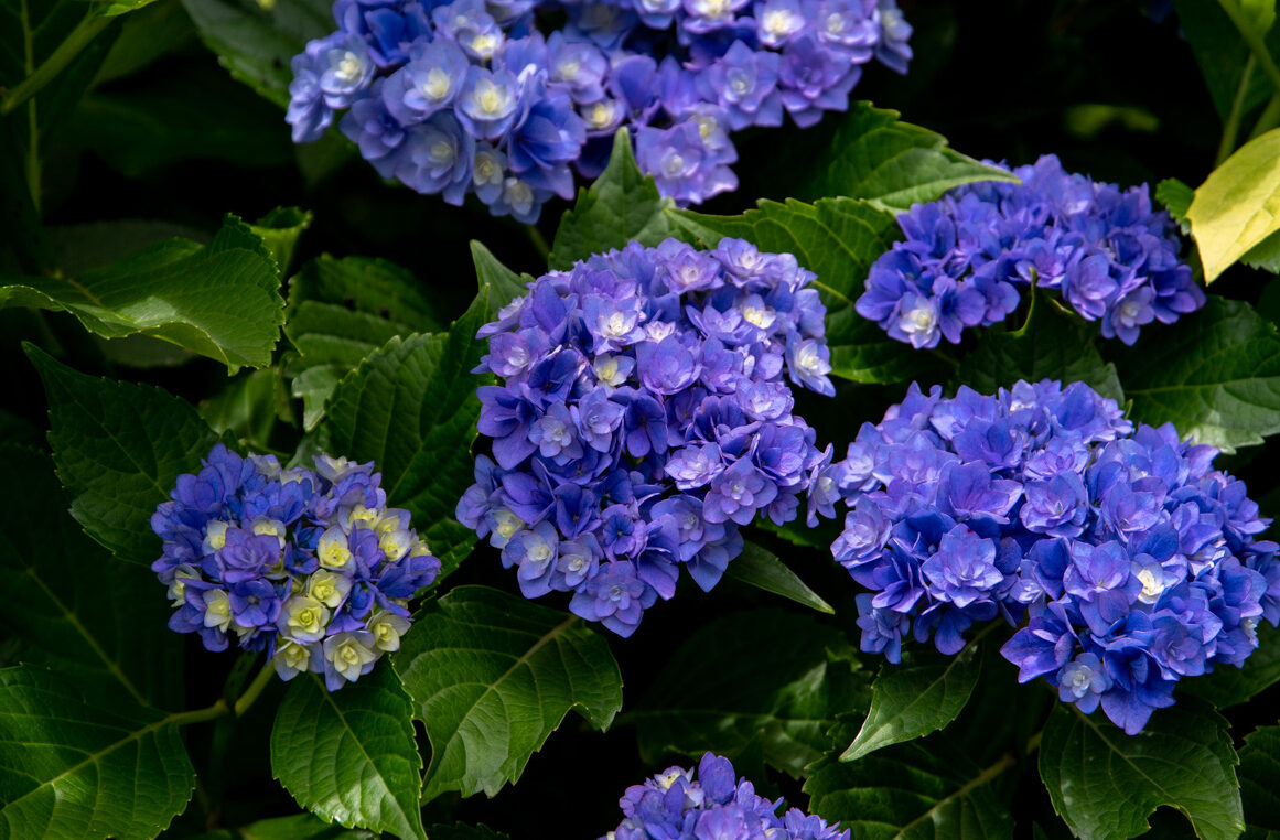 青や紫、ピンクや白、水色といったアジサイが、ポンポンと大きな花を並べるさまはまさに梅雨の風物詩。陽が射している場所では陽を透かし明るさを感じさせ、薄暗い場所ではミステリアスな空気を纏う姿は、人々が魅了されるのも納得の美しさです。