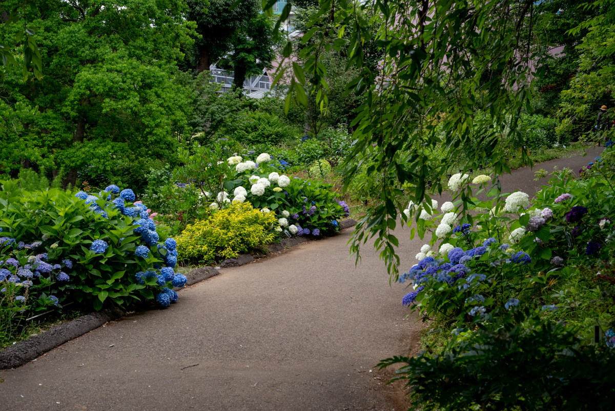 6月も中盤に差しかかろうというこの日は、遅咲きのバラだけでなくアジサイも見ごろを迎えていました。