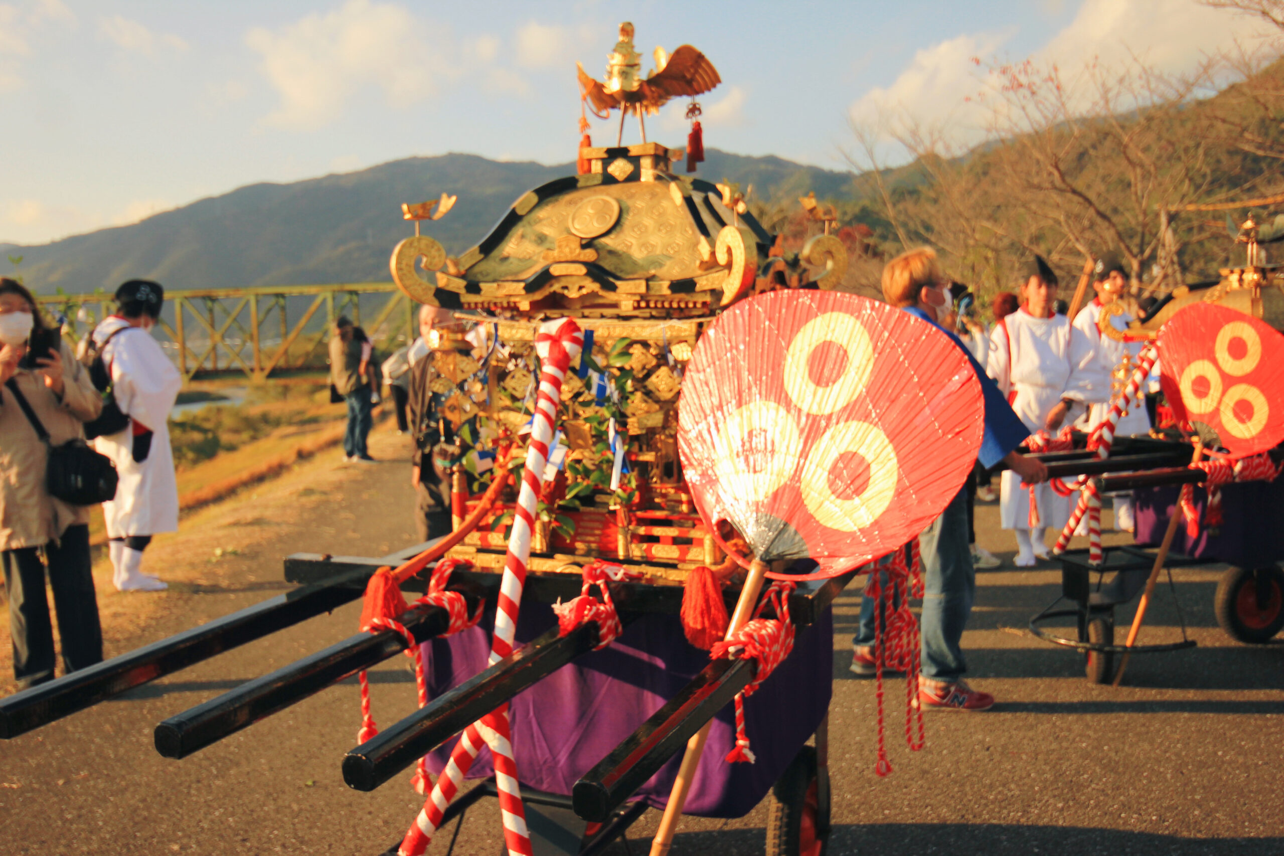 仁淀川にある御旅所に到着!舞の奉納が始まる